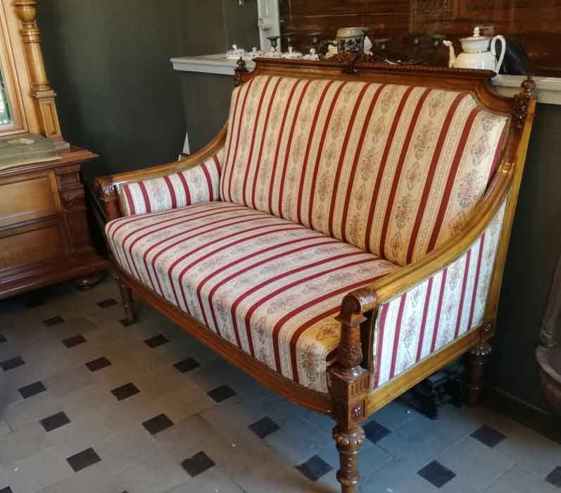 Sofa, kleiner Zweisitzer, Gründerzeit um 1880, Nussbaum.
