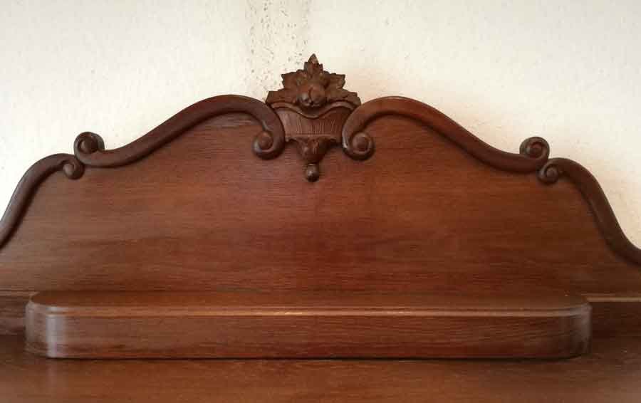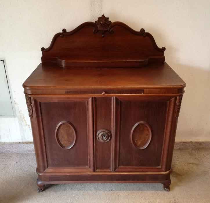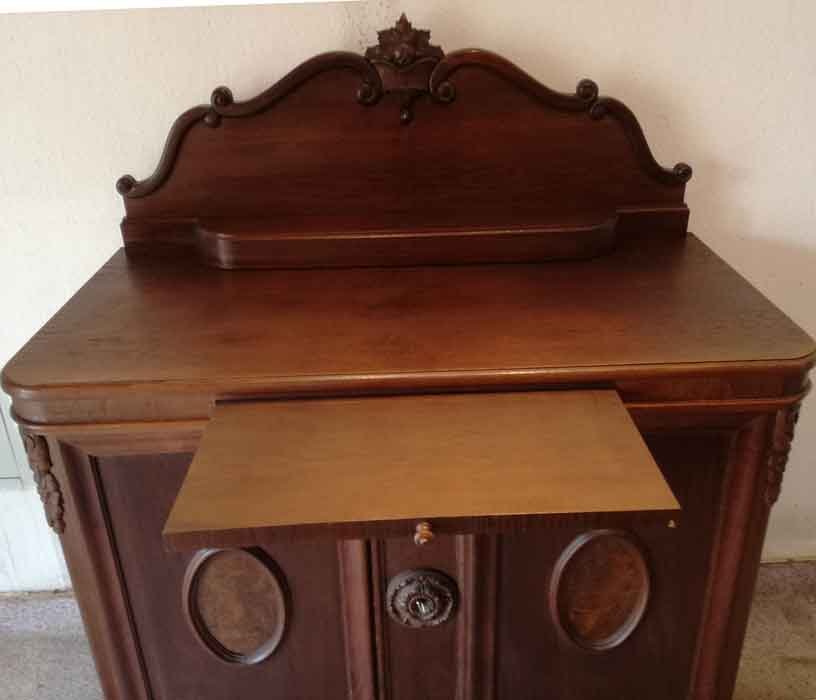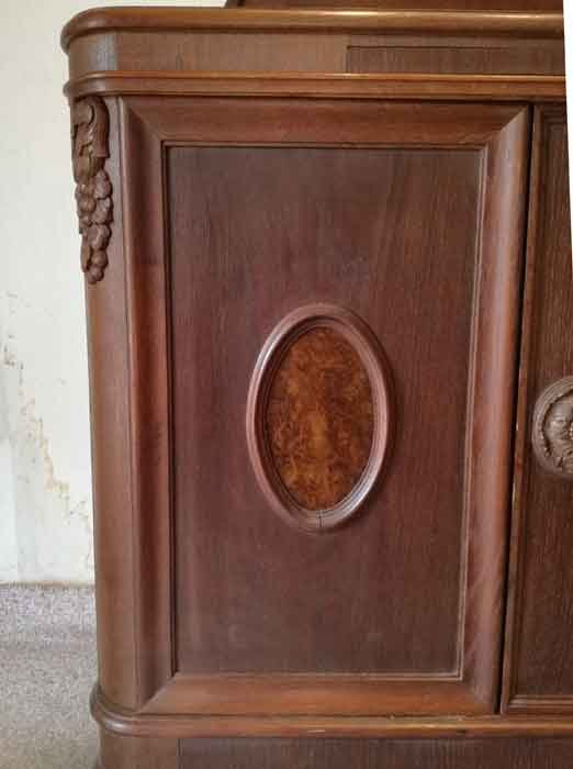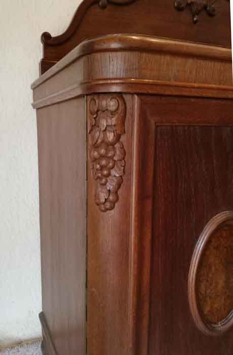 Anrichte, Herrenkommode mit Aufsatz um 1910, Eiche. Zweitürig, Türen mit ovalem Mittel-Medaillon. Innen mit zwei Schubkästen und ein Einlegebrett.