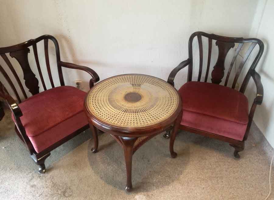 Es gibt zwei Sessel, welche dazu passen, siehe letztes Foto bzw. anderes Angebot.