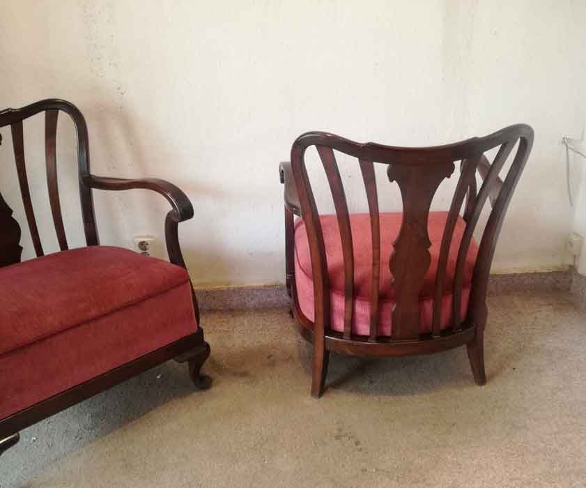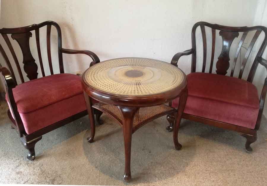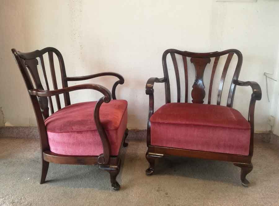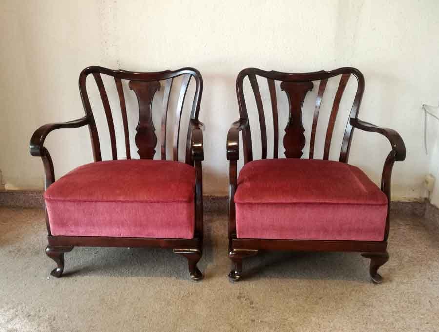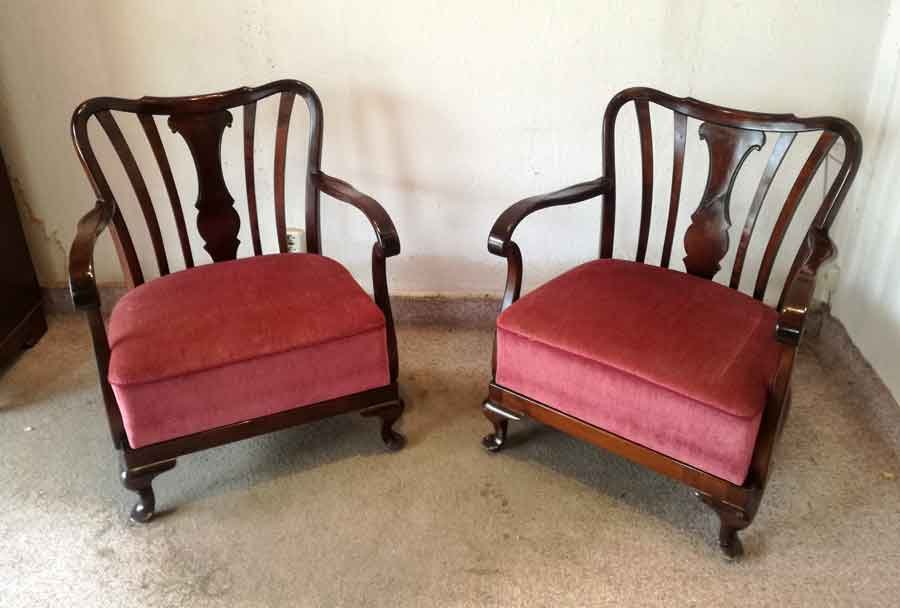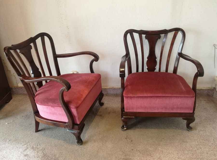 Zwei Sessel um 1920, sogen. Chippendale. Die Sessel sind sehr gut erhalten und stabil. Die Polster sind i.O. und der Stoff ist sehr gut.