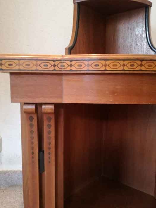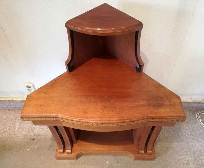 Eckkonsole, um 1910 mit oder ohne Aufsatz. Helles Holz mit Intarsien.