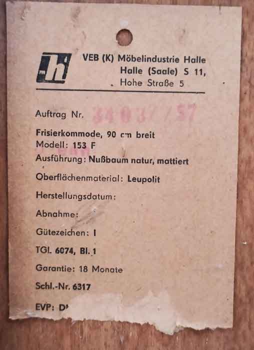 Frisierkommode, VEB Möbelindustrie Halle, verm. Entwurfsbüro Schkeuditz, Herstellungsjahr 1962; Midcentury Klassiker.