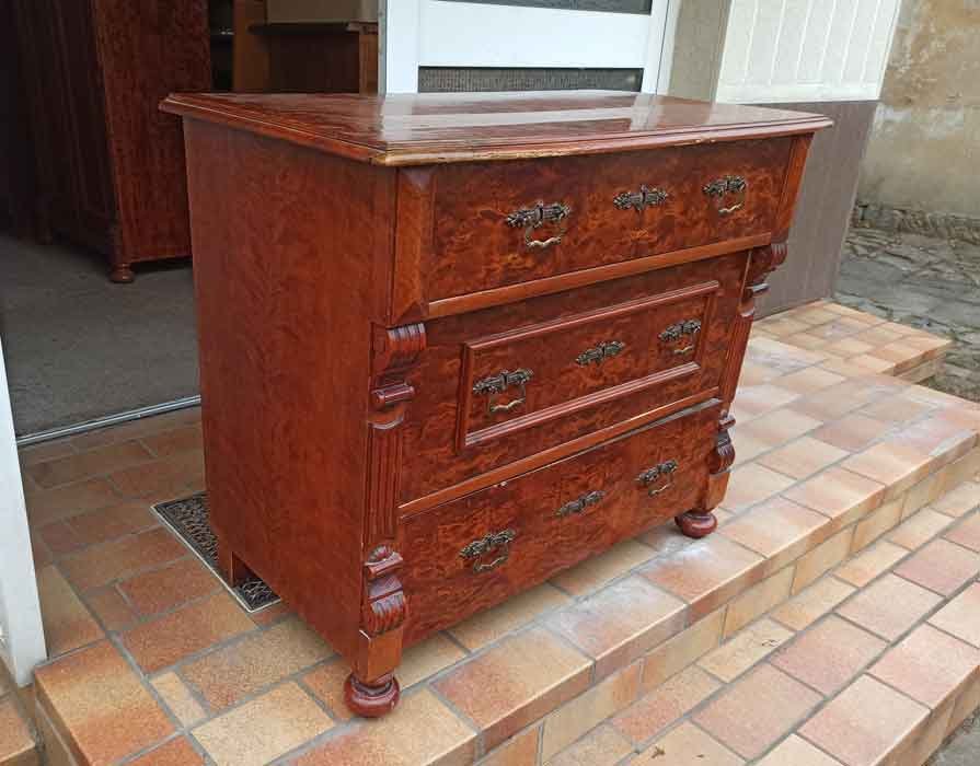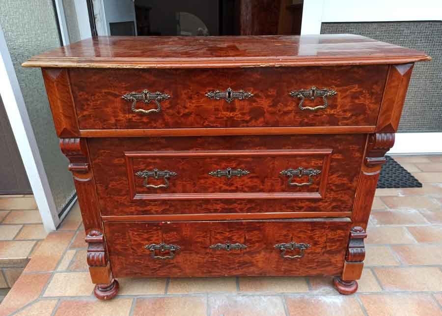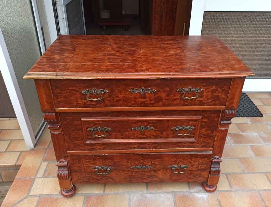 Kommode mit drei Schubkästen Gründerzeit um 1880, Birke.