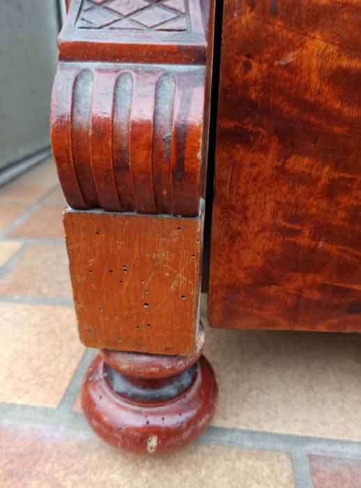 Unrestauriert, guter Zustand mit Gebrauchsspuren und kleinen Mängeln. Inaktive, alte Anobienlöcher.