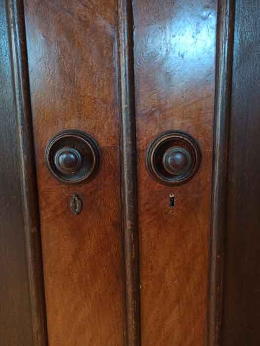 Anrichte um 1920 mit Aufsatz, zweitürig mit Einlegebrett. Man kann sie mit oder ohne Aufsatz stellen, siehe Fotos. Der Zustand ist gut, mit Gebrauchsspuren und kleineren Mängeln. Sie wurde bis zuletzt im Wohnraum genutzt. H. 103 cm (mit Aufsatz 152 cm), B. 109 cm, T. 49 cm.