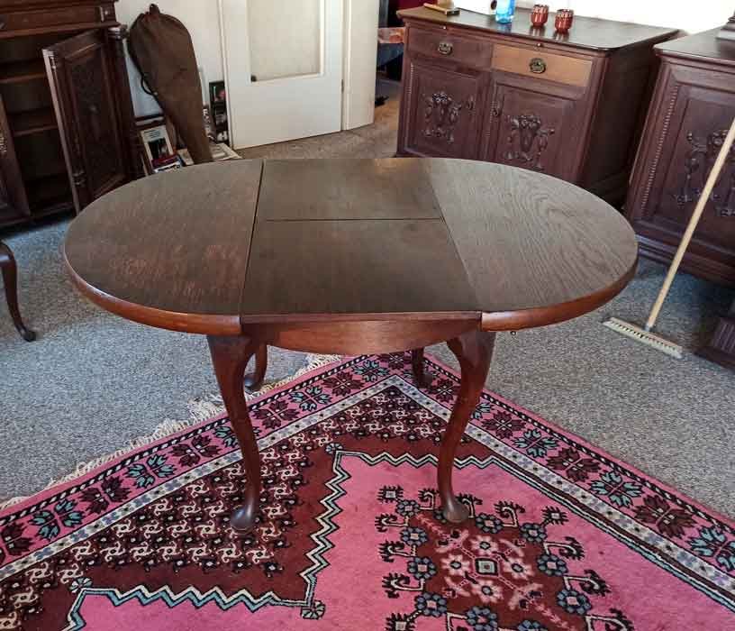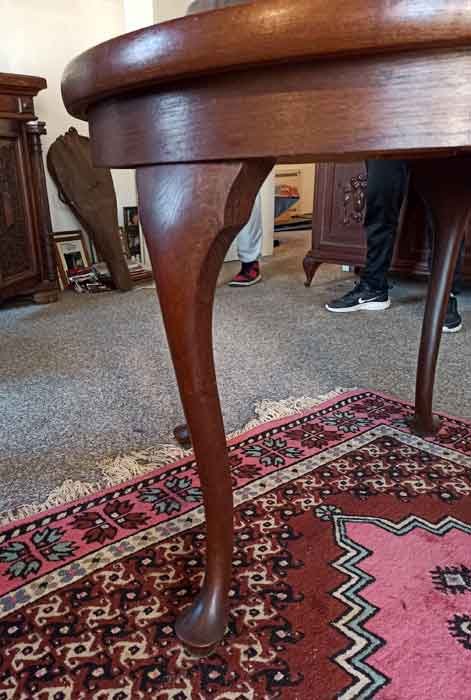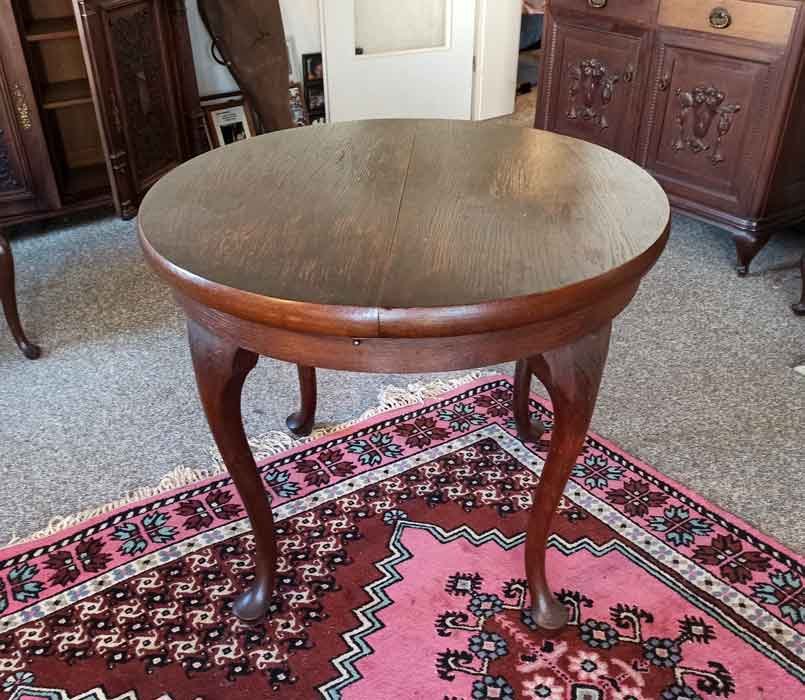 Tisch, Ausziehtisch rund mit geschwungenen Beinen. Der Zustand ist gut, sofort nutzbar.