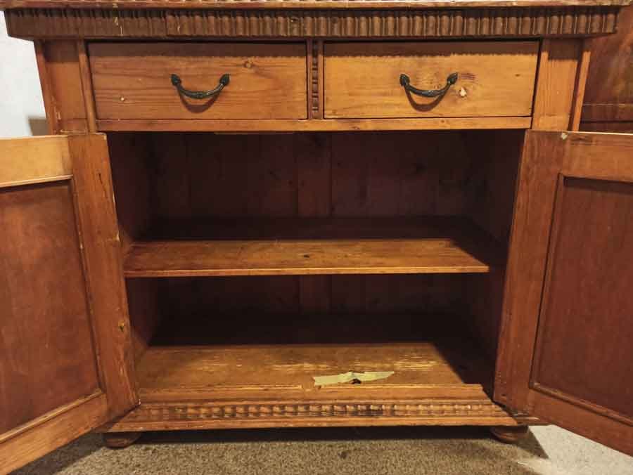 Anrichte um 1910 Massivholz, Weichholz. Guiter Zustand in schönem gebrauchten Nutzungszustand. Es wurde normal als Küchenmöbel verwendet und es kann sofort benutz werden.