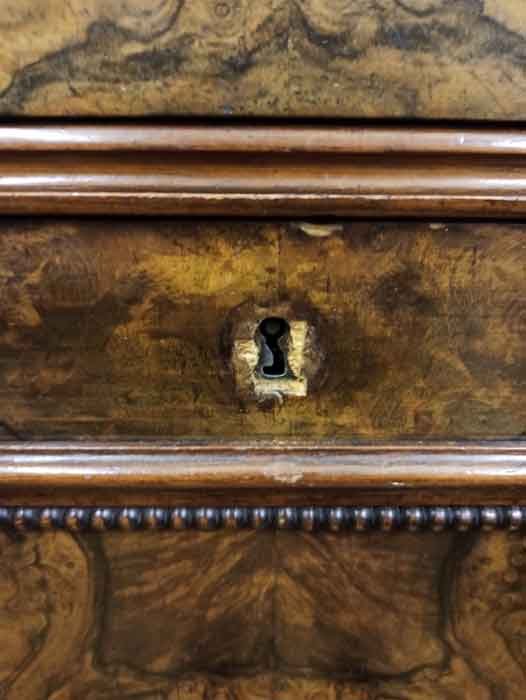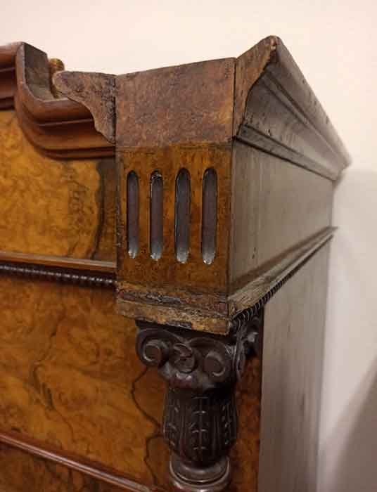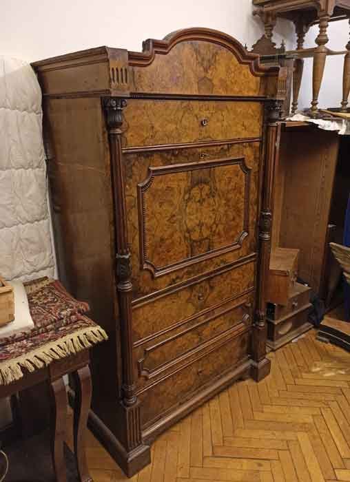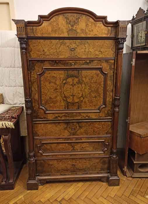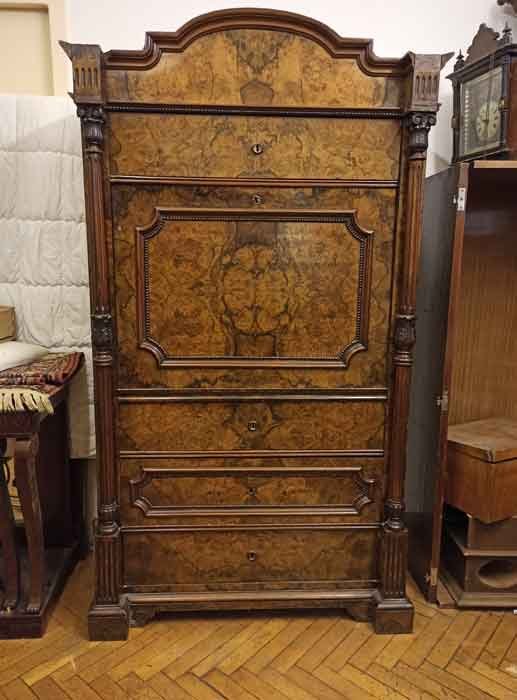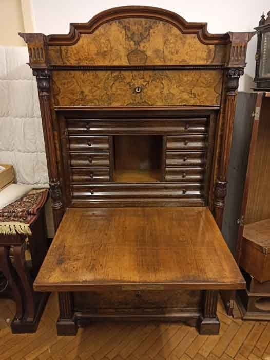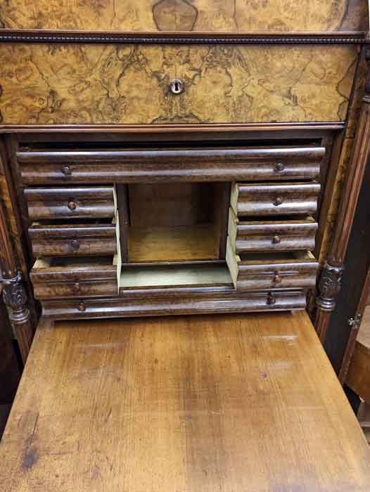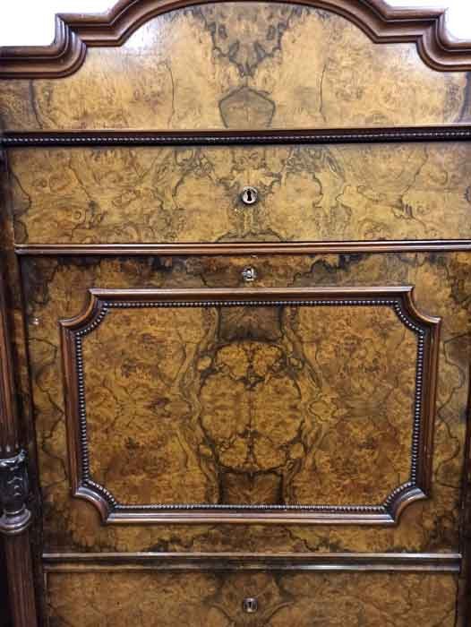 Säulen-Sekretär Historismus um 1870-1890. Nuss Wurzel furniert.