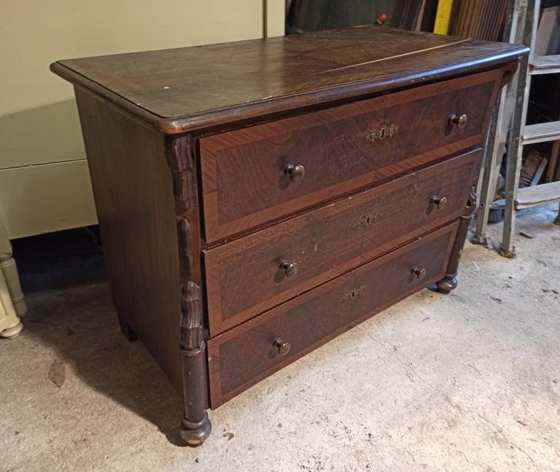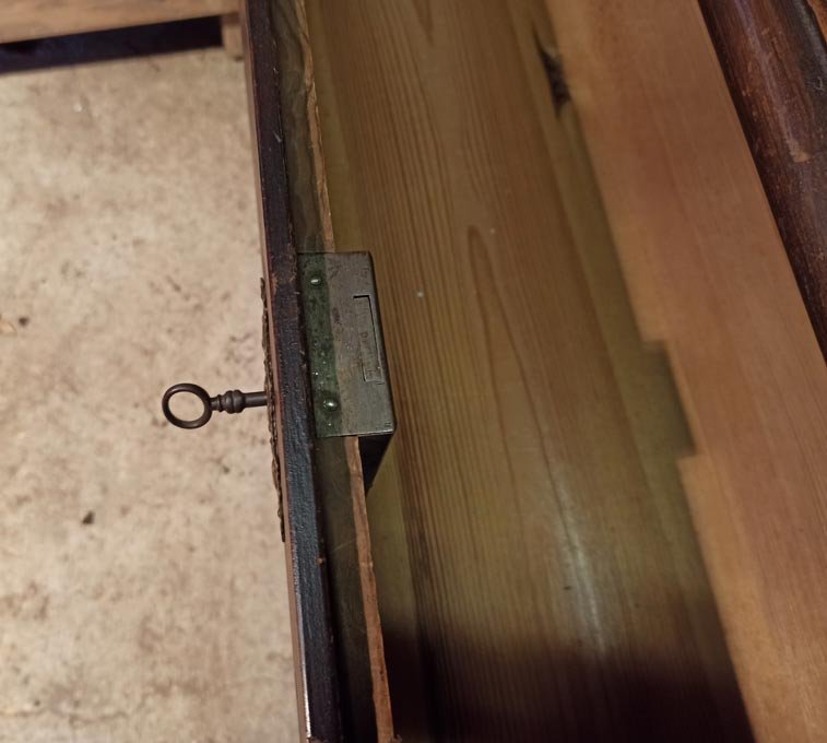 Kommode um 1870, Nadelholz mit original Farbfassung. Original Zustand, guter Zustand, Schlüssel und Schlösser vorhanden. In der Platte ein Riss.