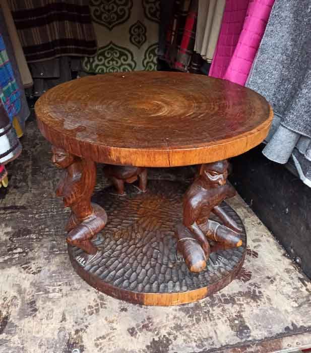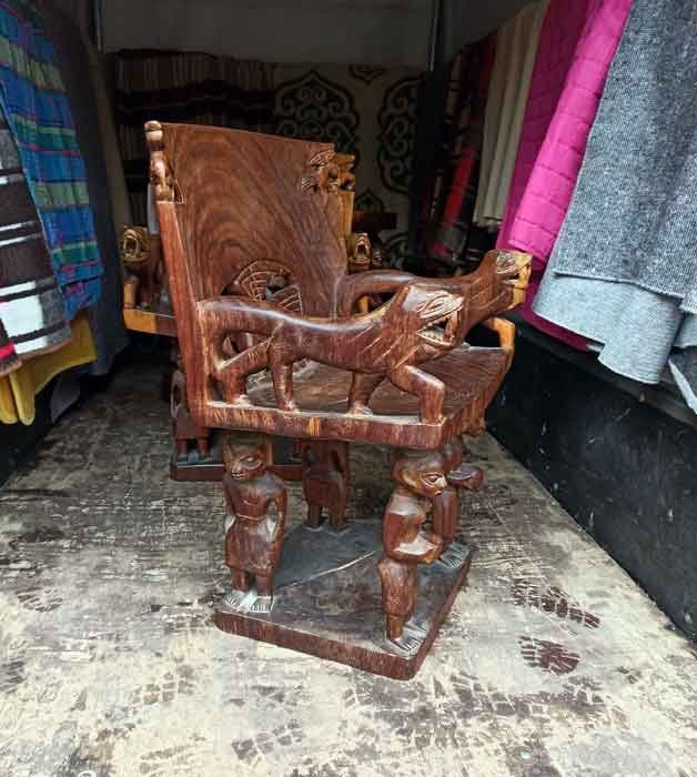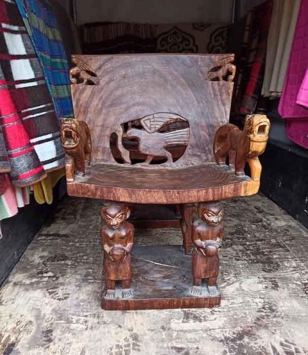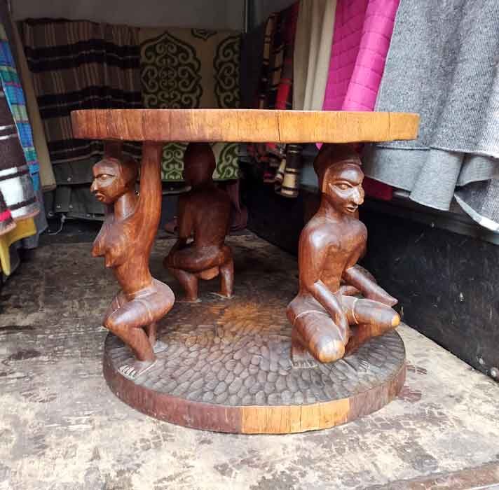 Sitzgruppe, 2x Armlehnstühel und Tisch. Afrika, 2.Hälfte voriges Jahrhundert.  Möbel aus vollem Stamm geschnitzt, nicht aus Einzelteilen zusammengesetzt. Schweres Hartholz.