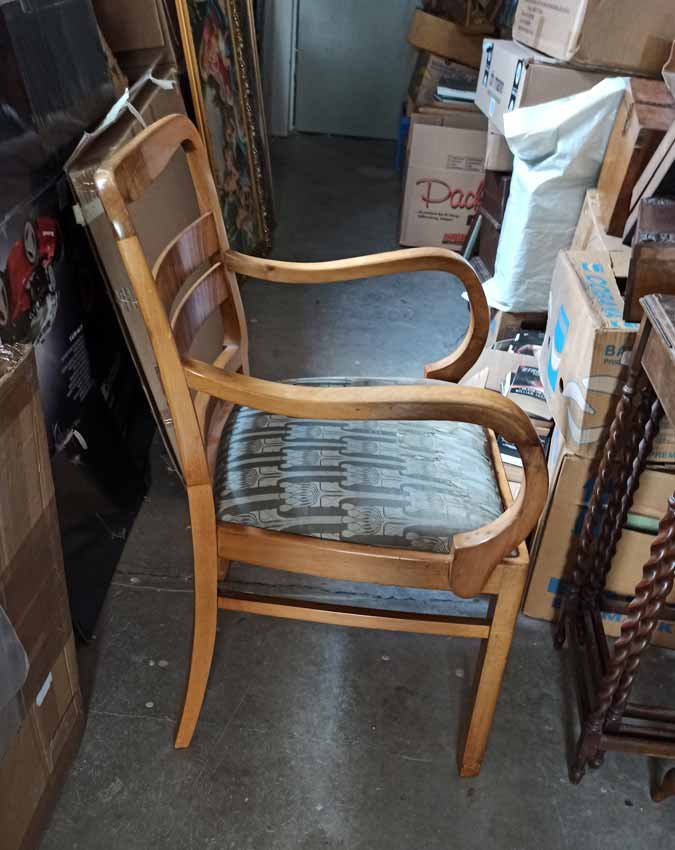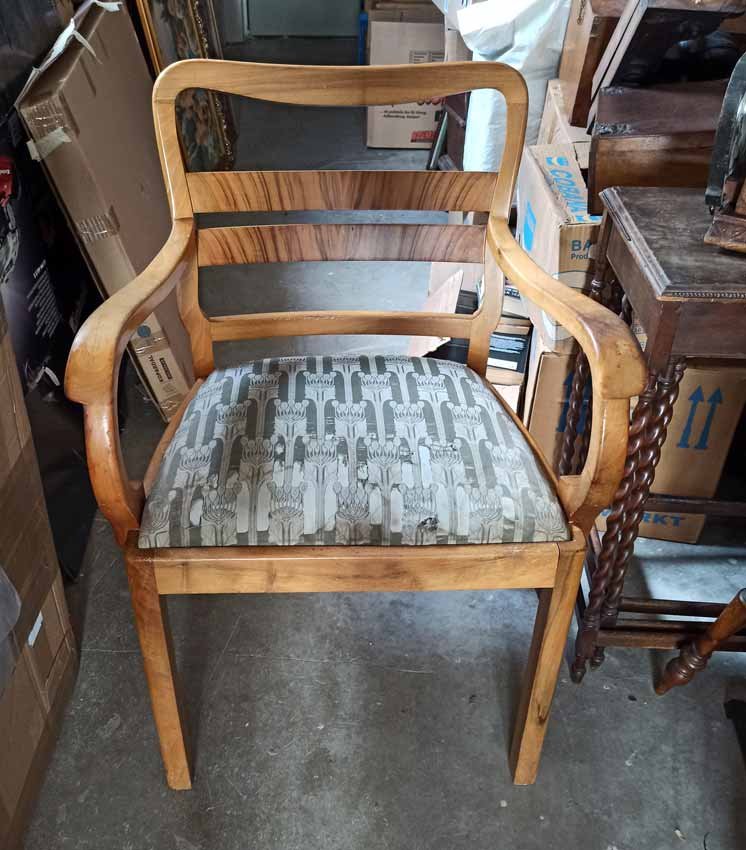 Stuhl mit Armlehnen um 1920-30. Auch als Paar oder einzeln., 2x vorhanden. Z.T. mit etwas Reparaturbedarf. H. 88/ 48 cm, B. 63 cm, T.47 cm. Preis für 1x.
