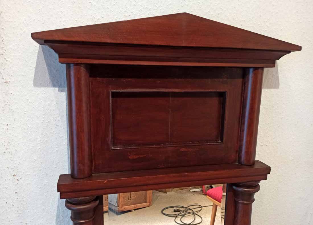 Biedermeierspiegel architektonisch Gegliedert mit Halbsäulen und Giebel.
