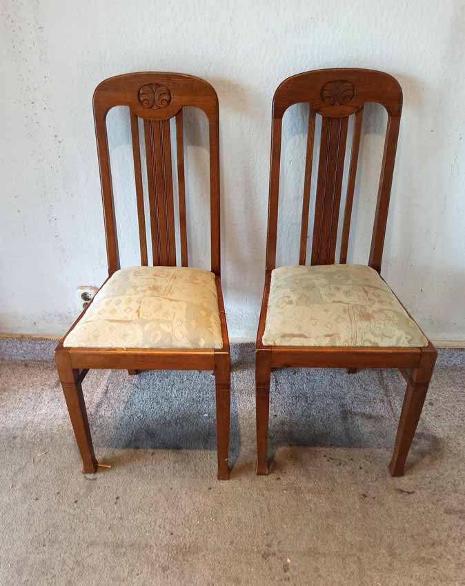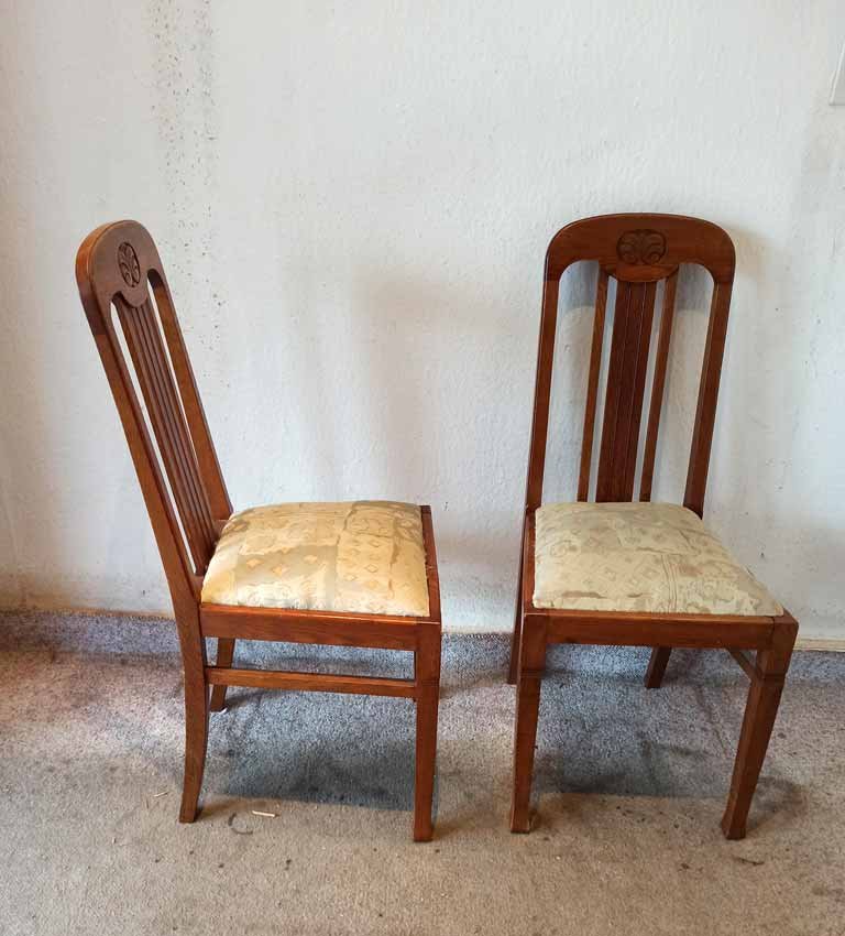 Zwei Stühle um 1910. Der Zustand ist gut, die Polster können verbessert werden. H. 100/50 cm.