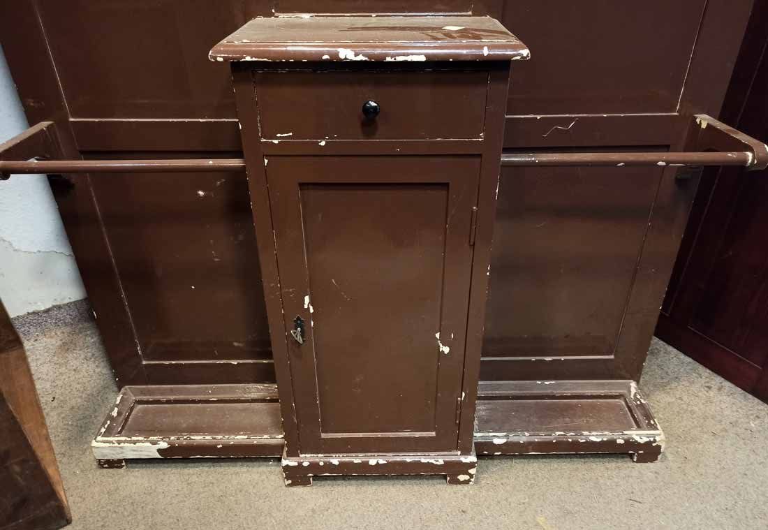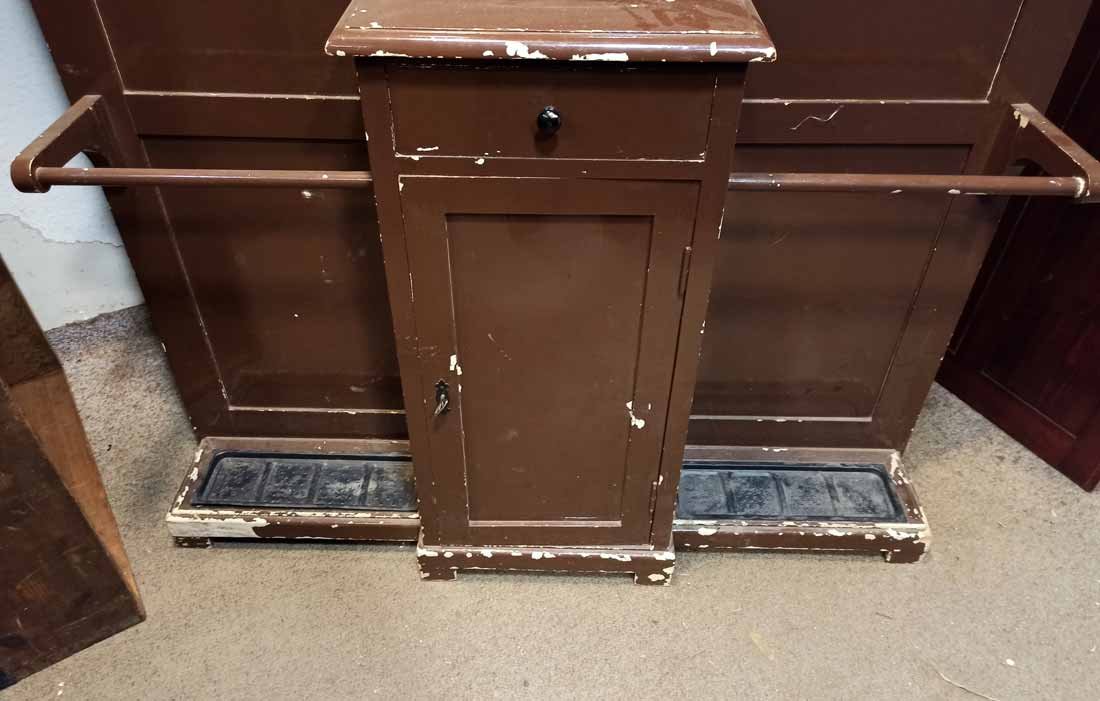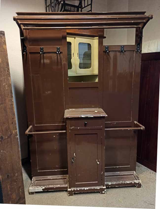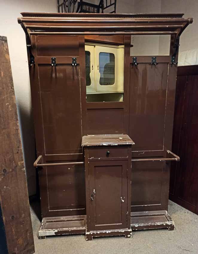 Lagerauflösung; Garderobe ca 1910, große Garderobe, oben mit Spiegel, unten Schirm- Stockhalter und Schränkchen. Zustand siehe Fotos zum aufarbeiten z.B. Shabby Chick. H. 195, B. 130 cm, T.25 cm