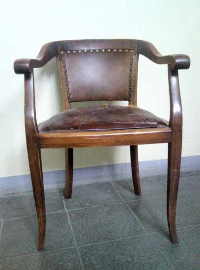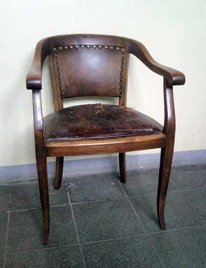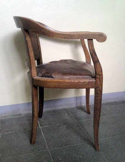 Stuhl, Armlehn- od. Schreibtischstuhl um 1910, Eiche. Sitzfläche und Rückenlehne ledergepolstert.