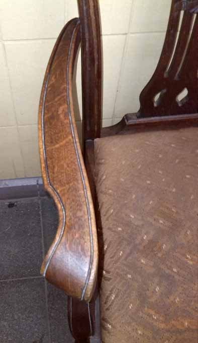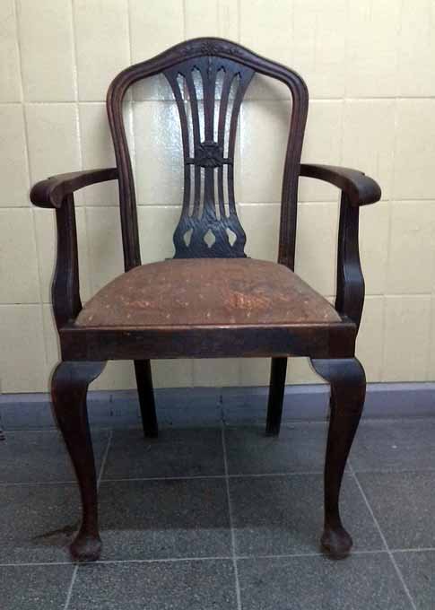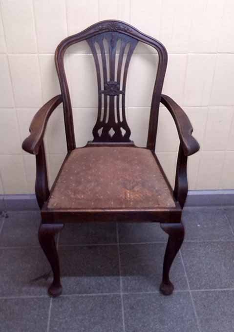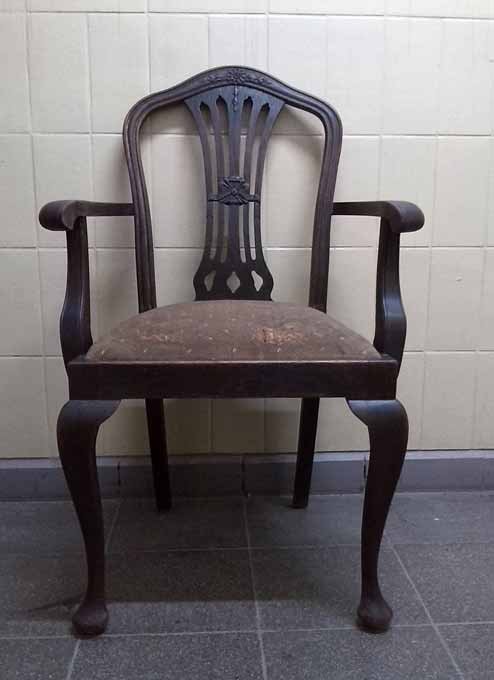 Stuhlgestell und Polster in gutem, nutzbaren Zustand. Bezugsstoff muss erneuert werden.