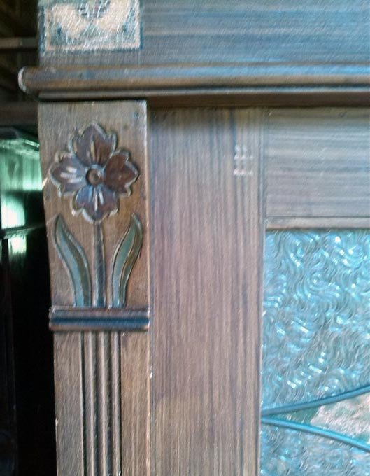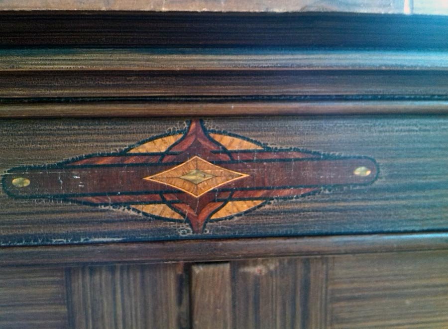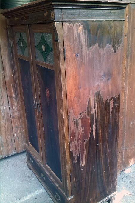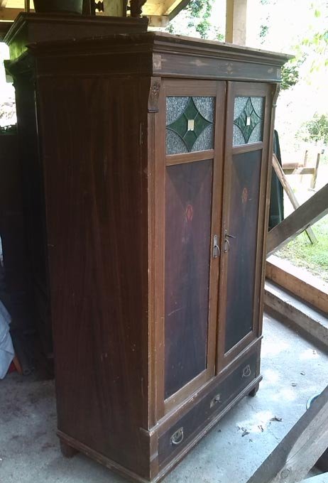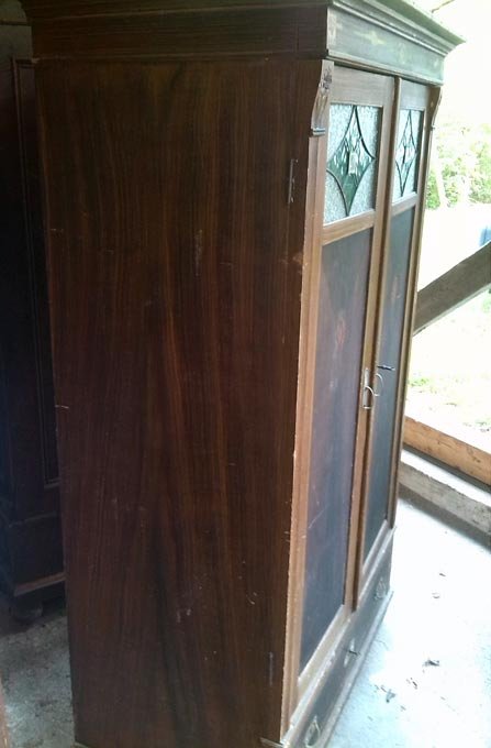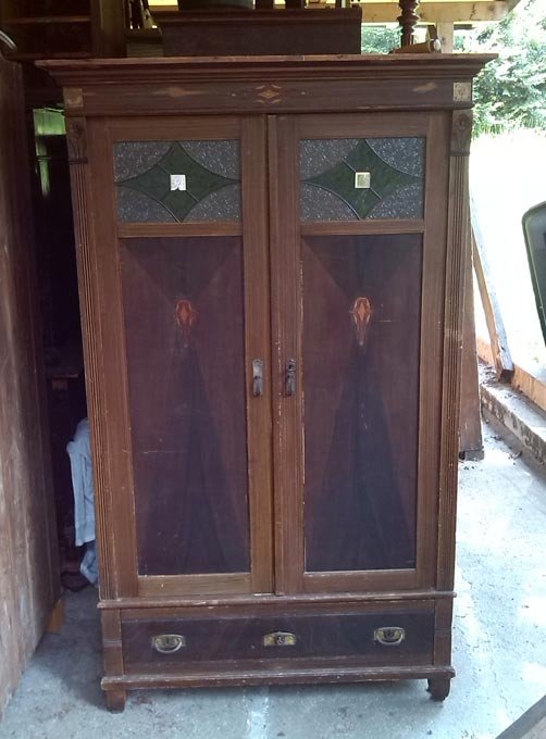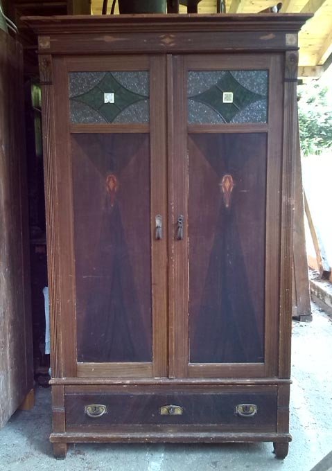 Kleiderschrank, Jugendstil um 1900, Weichholz/Nadelholz. Zweitürig unten ein Schubkasten.