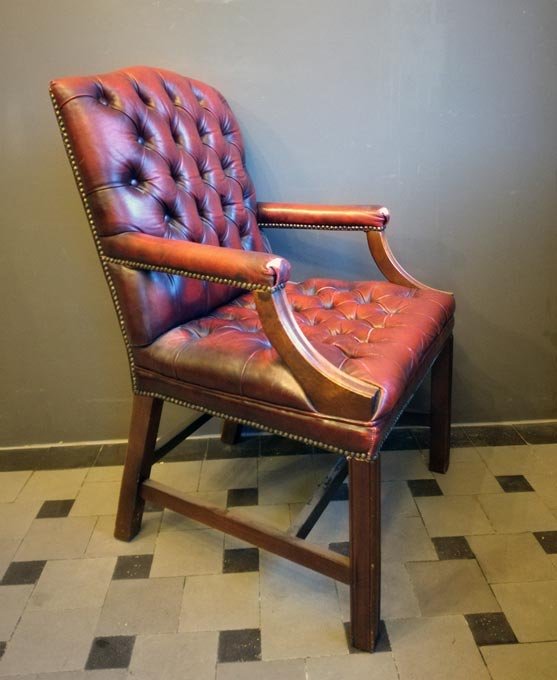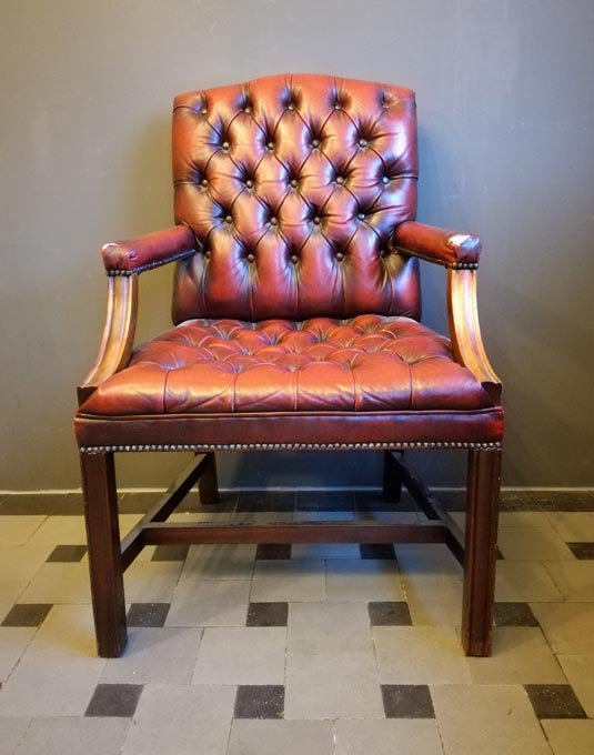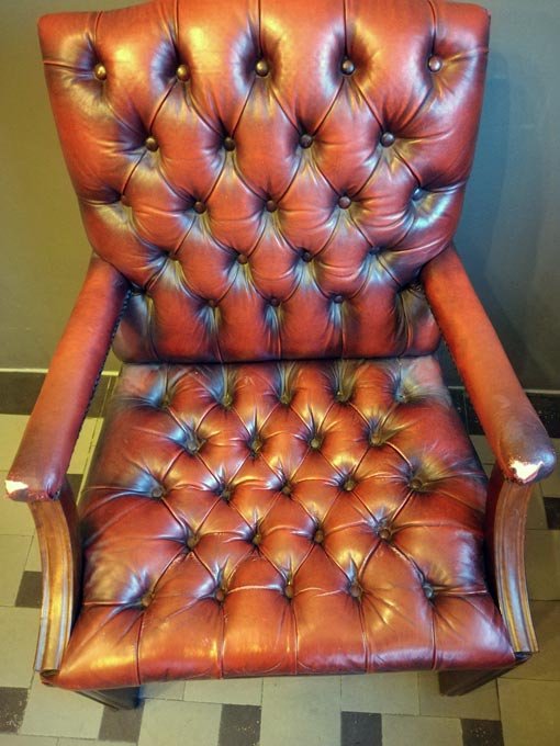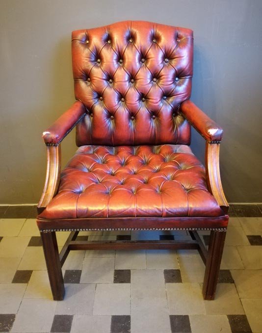 Armlehnstuhl, rotes Leder, gesteppt.