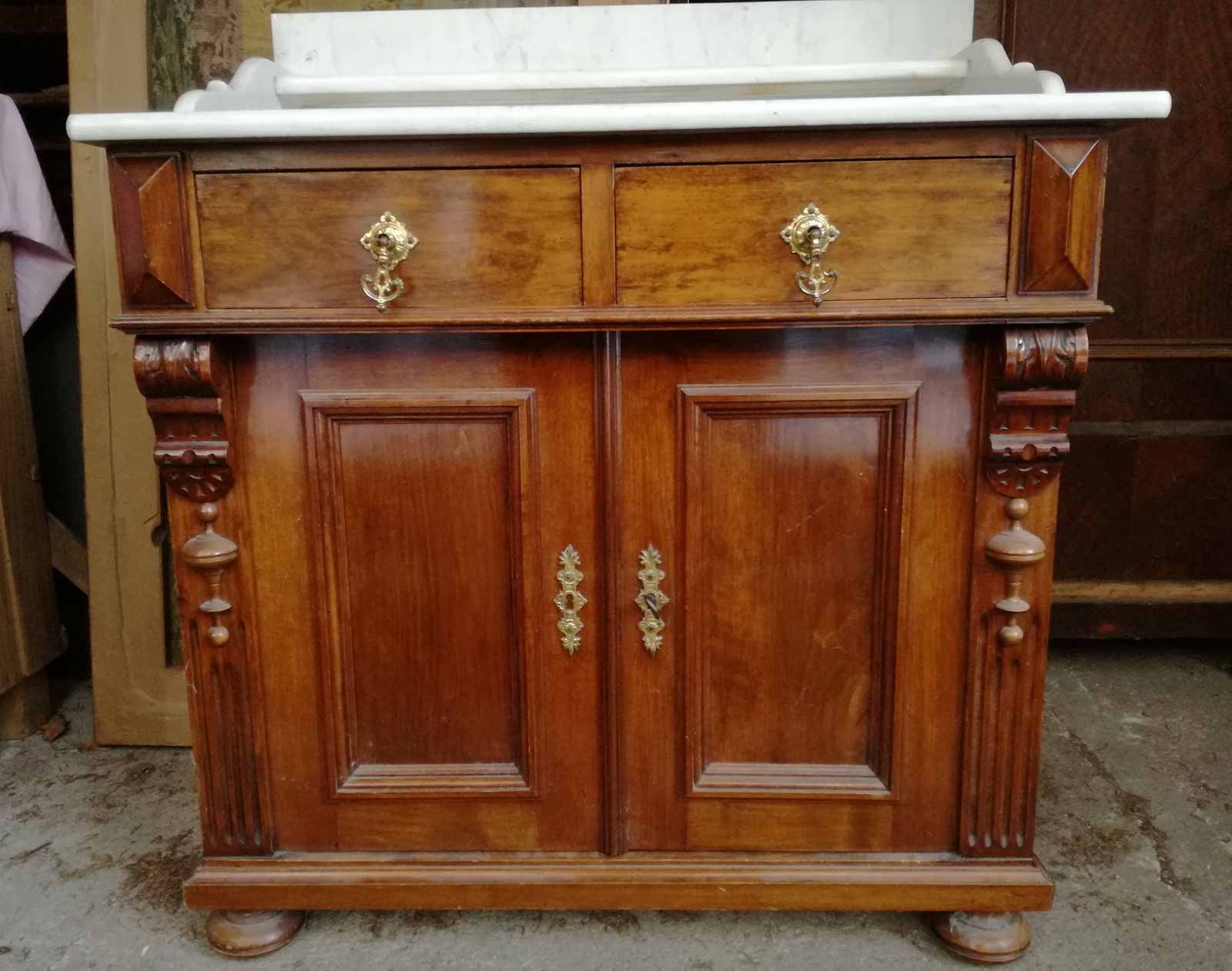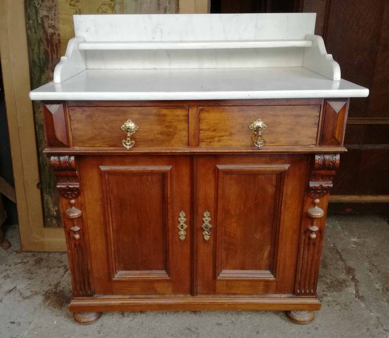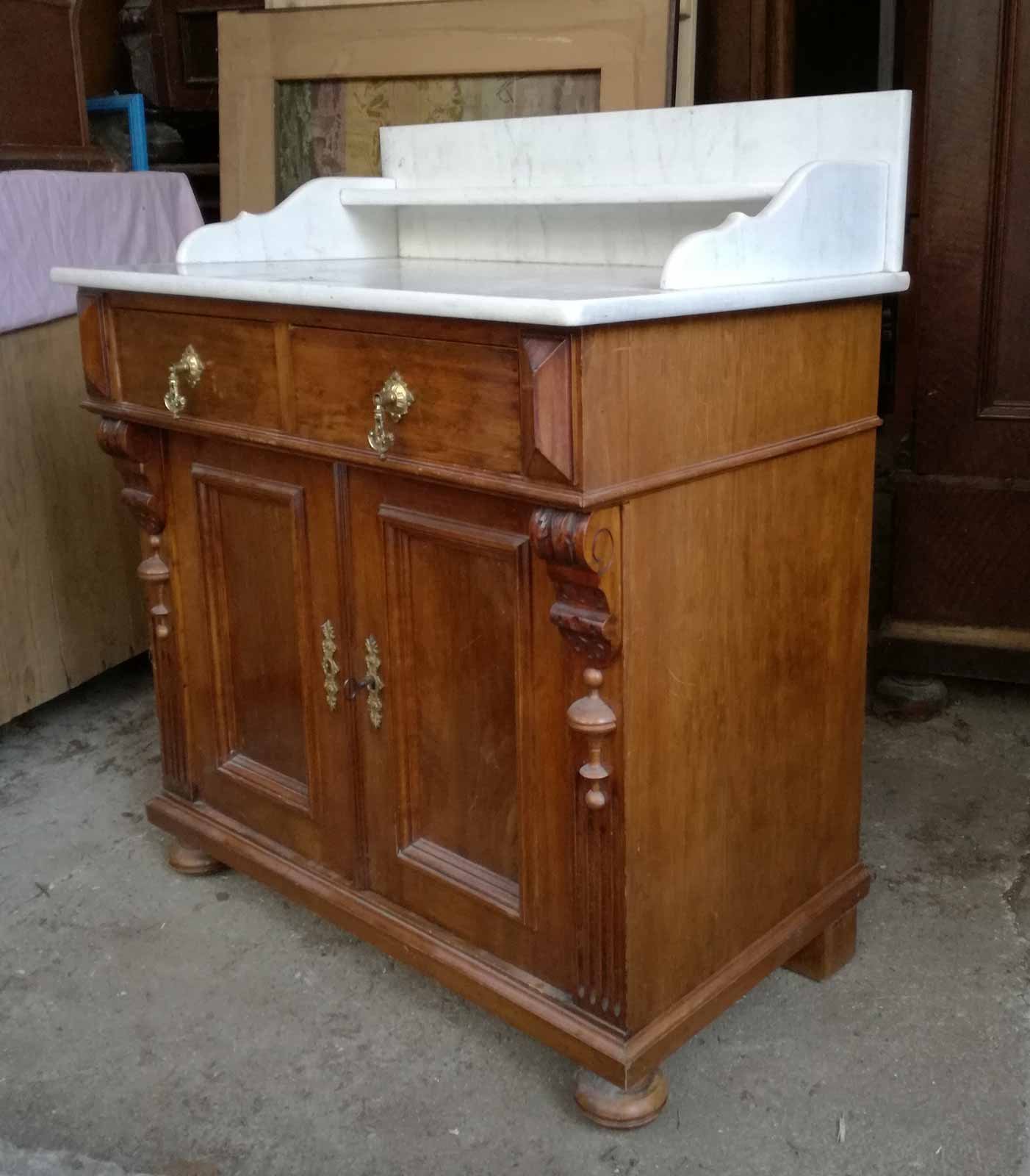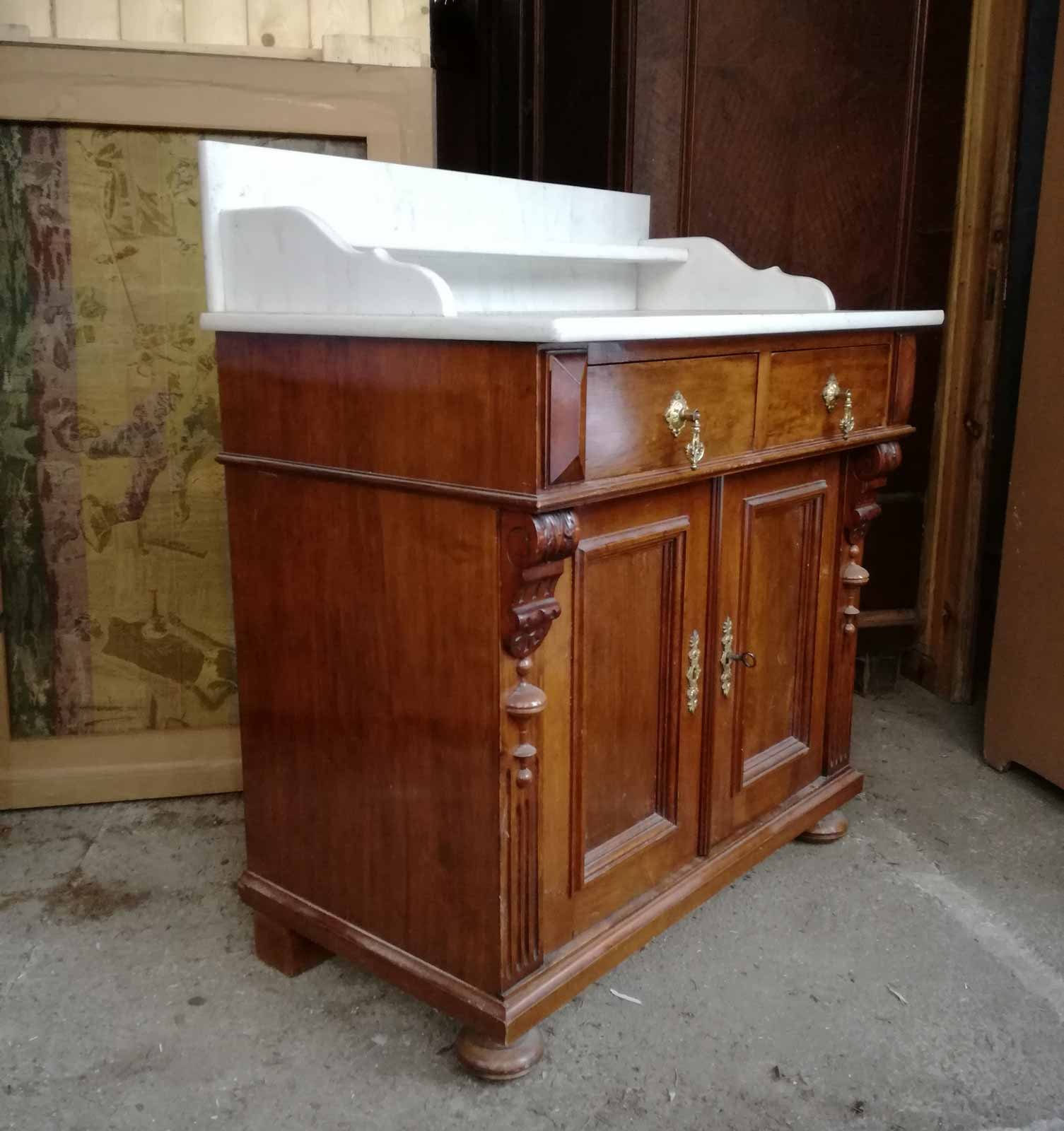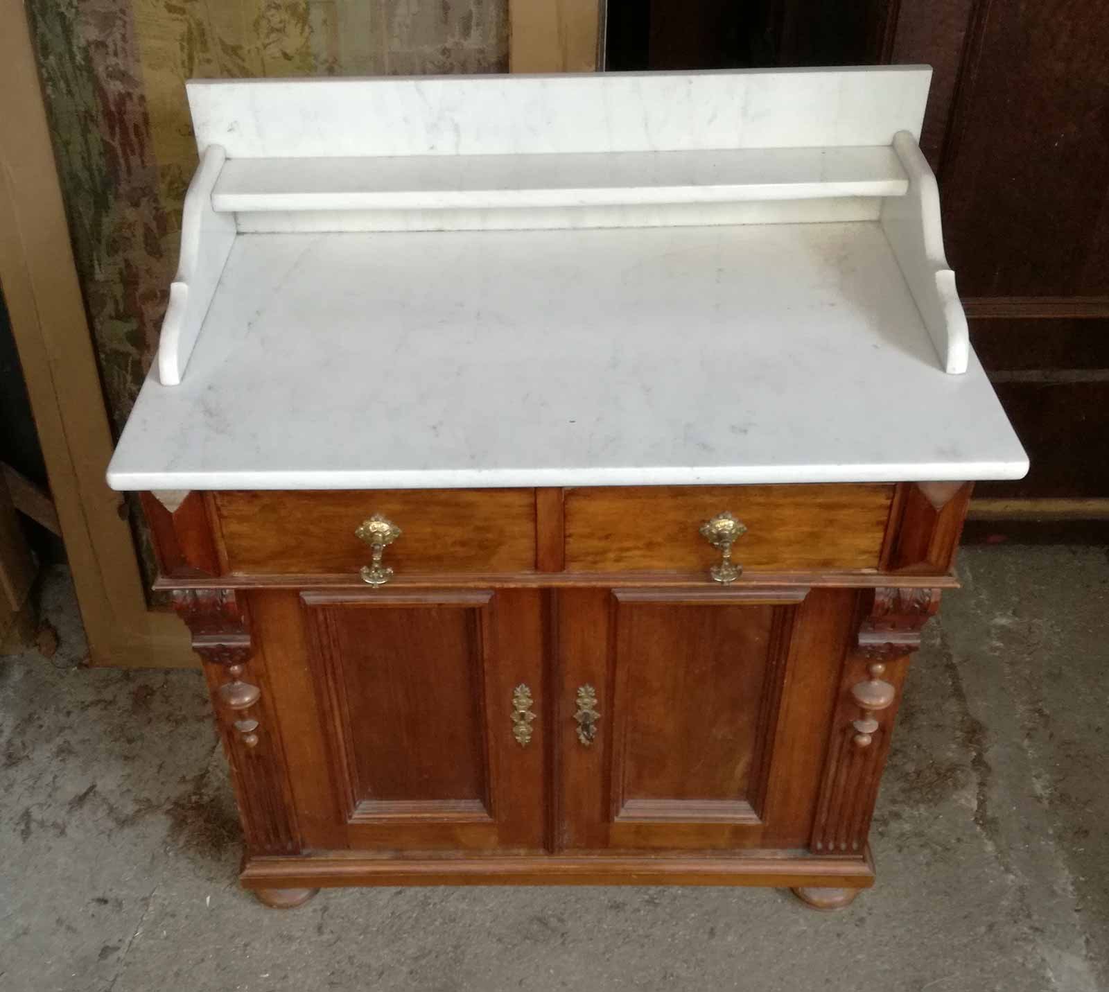 Reserviert!! Nussbaumkommode Gründerzeit um 1880. Zwei Schubkästen, unten zwei Türen dahinter mit einem Einlegebrett. Sehr guter, wohnfertiger Zustand. H. 75/89 cm, B.76 cm, T. 46 cm