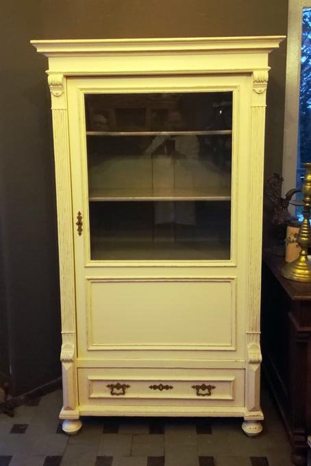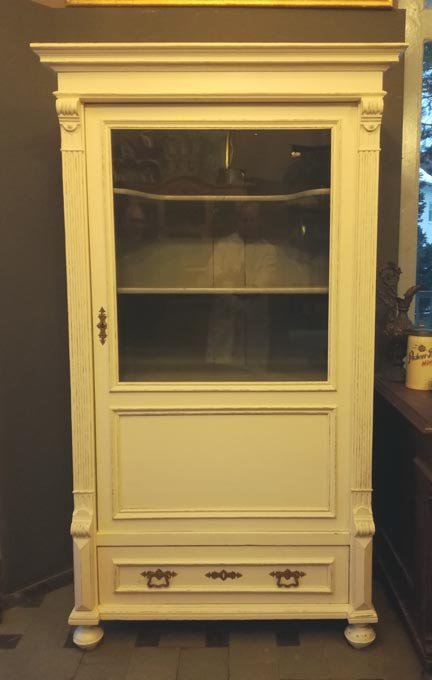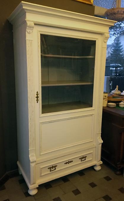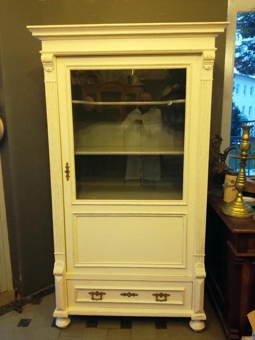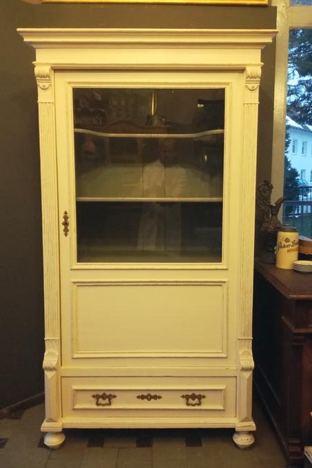 Vitrine, Gründerzeit um 1880, weis gefasst, Shabby Chic