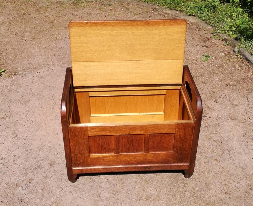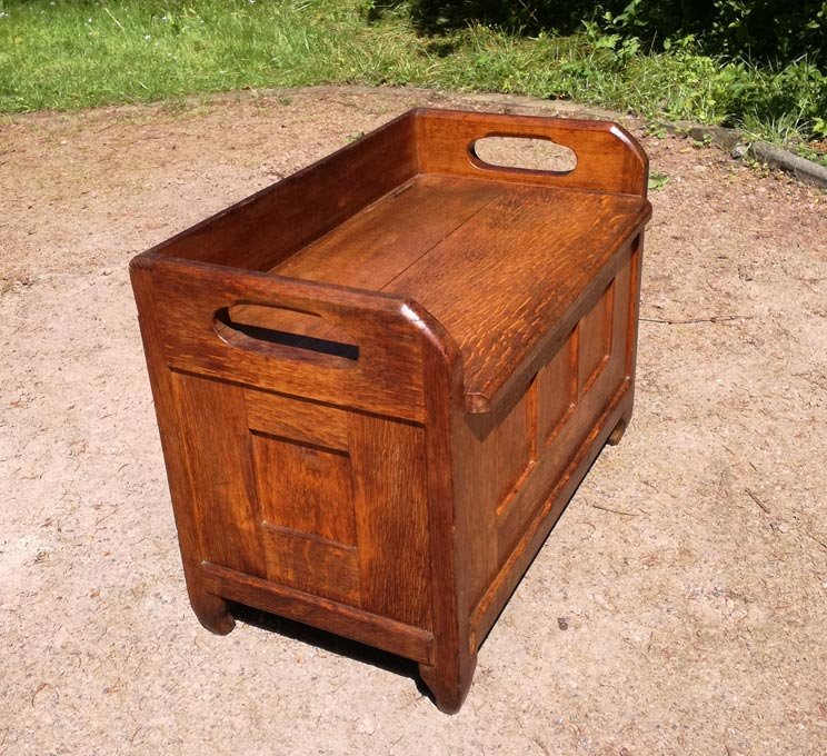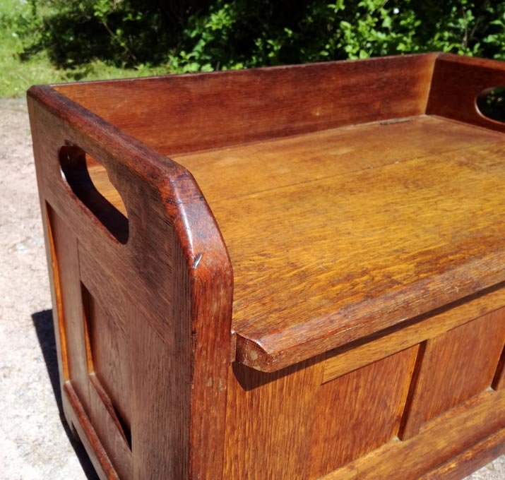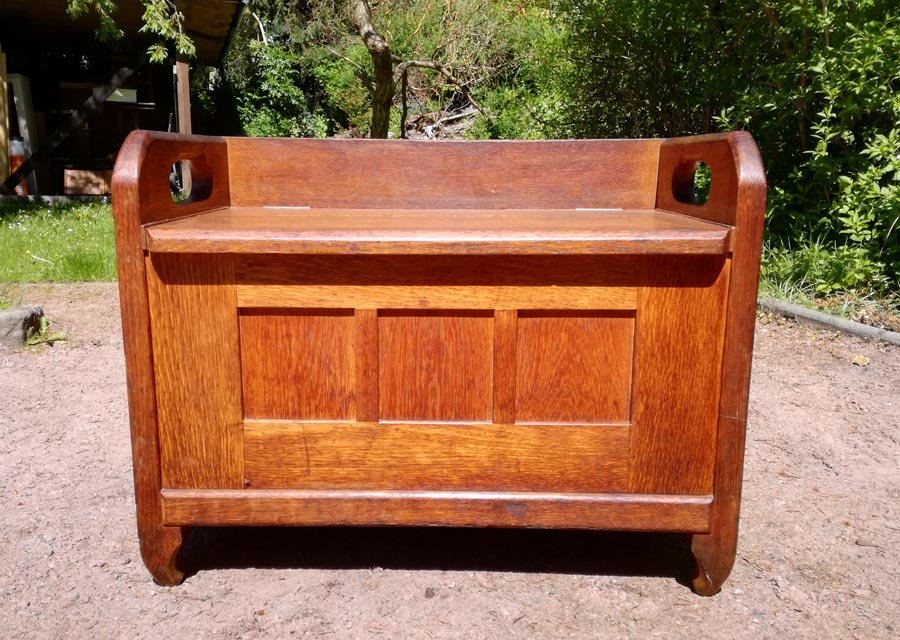 Truhenbank. Richard Riemerschmid, Hellerauer Werkstätten, Dresden um 1908. Eiche hell.