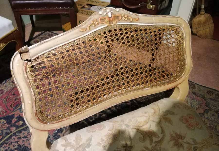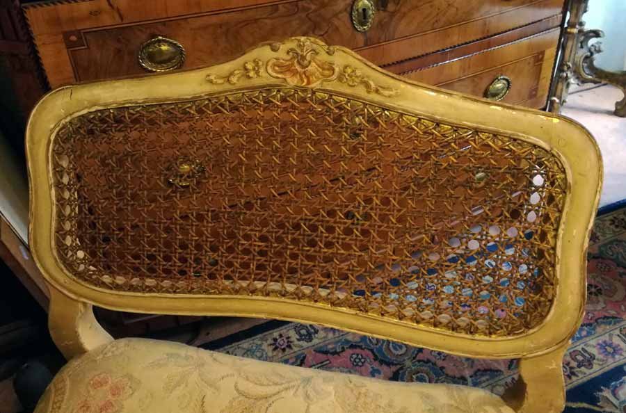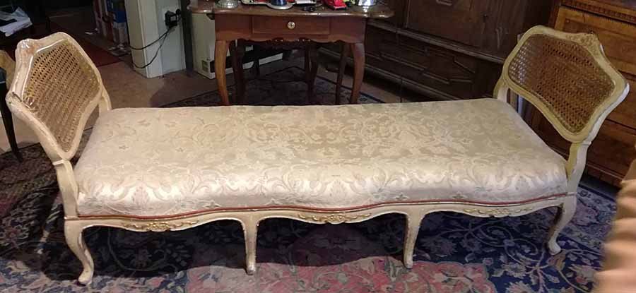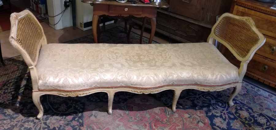 Reserviert! Barocke Liege, Sultane um ca 1740. Originalmöbel der Zeit. Gefasst und vergoldet. Seltenes Möbel aus der Zeit. Unrestauriert, Gestell und Polsterung reparaturbedürftig. Fassung verm. alt übergangen.