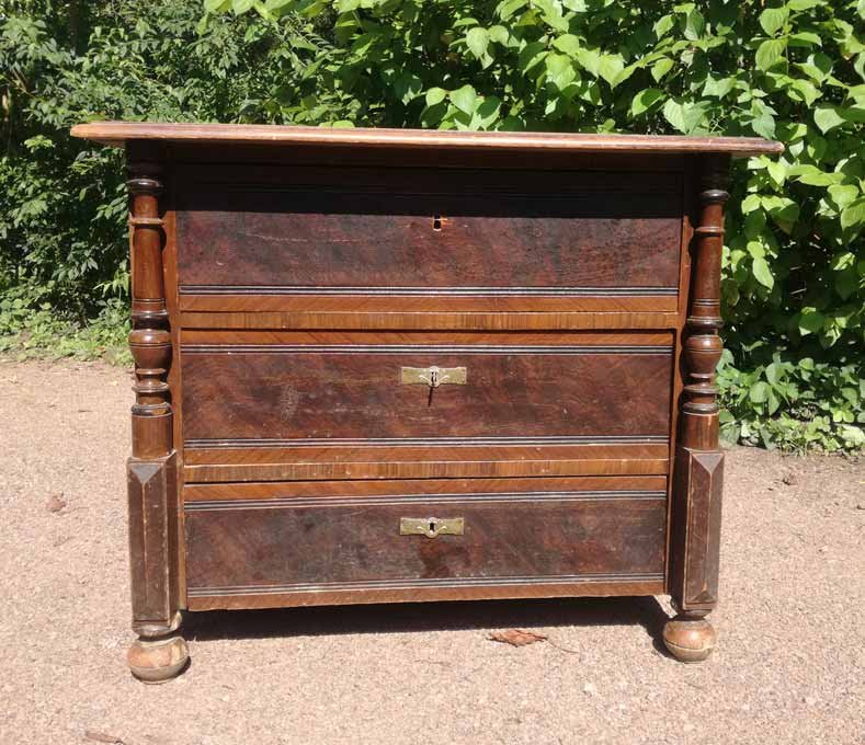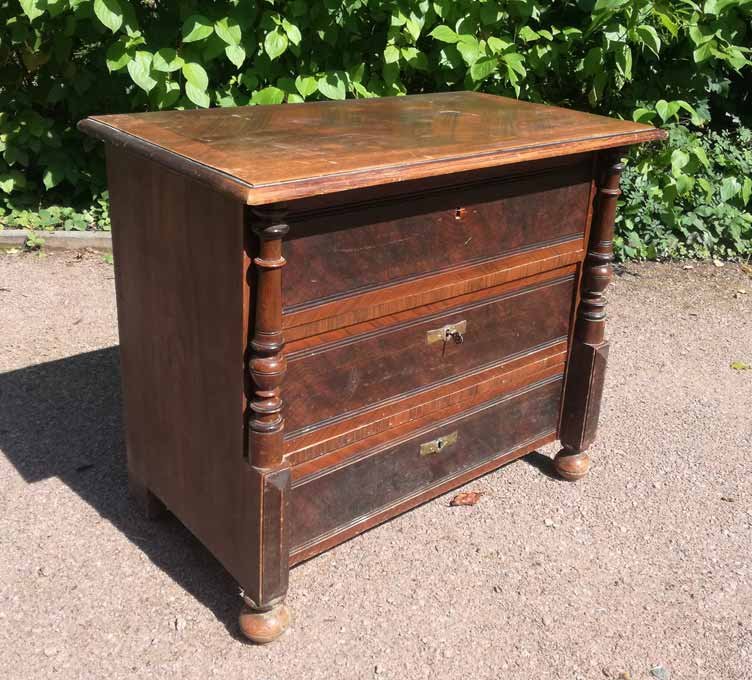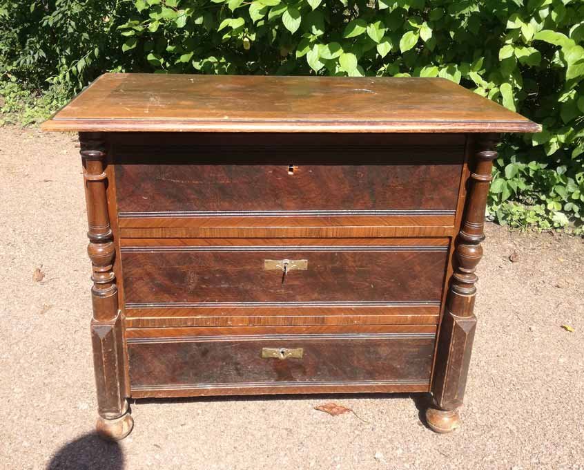 Kommode um 1880, Gründerzeit. Drei Schubkästen, seitl. mit Säulen. Guter Originalzustand.