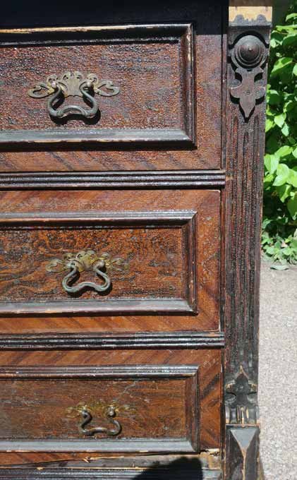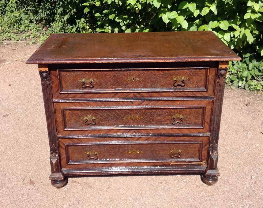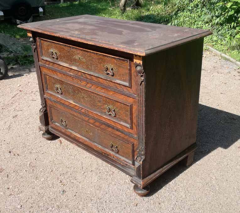 Kommode um 1890, Gründerzeit. Drei Schubkästen, seitl. zeittypische Gründerzeitelemente. Guter Originalzustand.