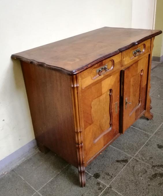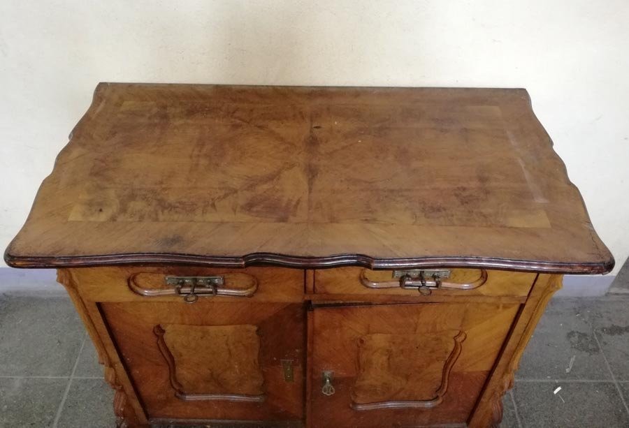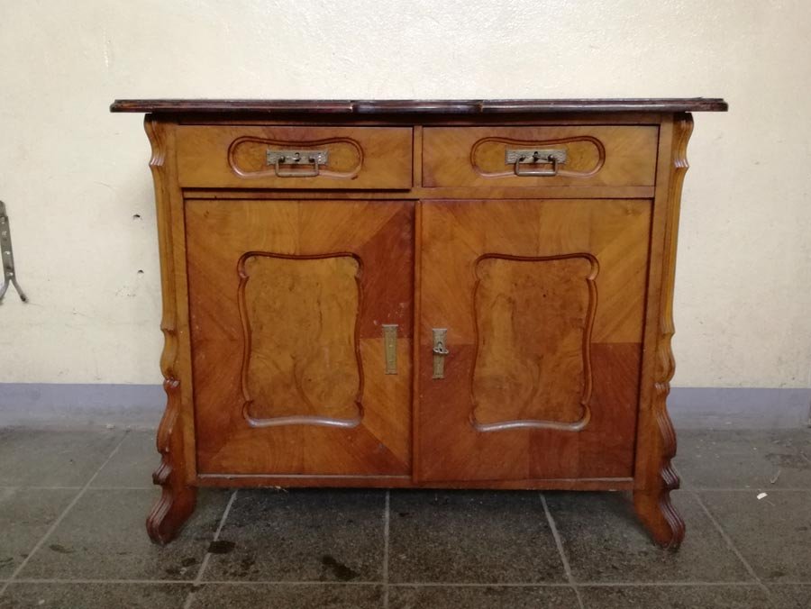Kleines Schränkchen, Herrenkommode, Spätbiedermeier um 1860, Nußbaum hell.