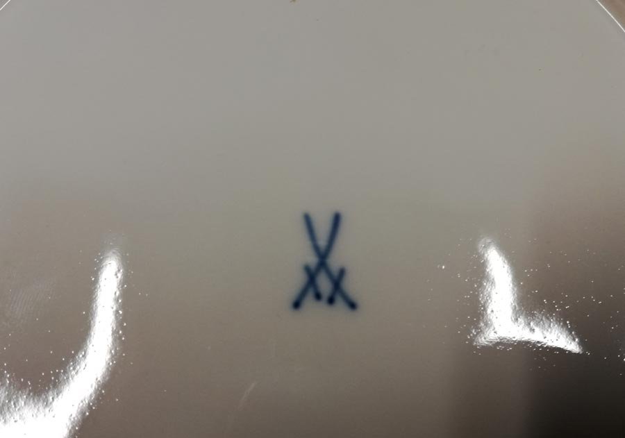 Blaue Schwertermarke der Manufaktur Meissen, zwei mal gestrichen.