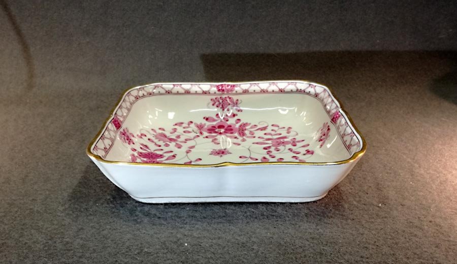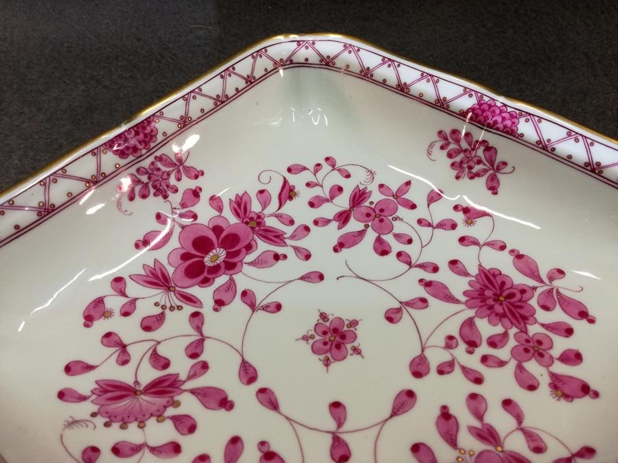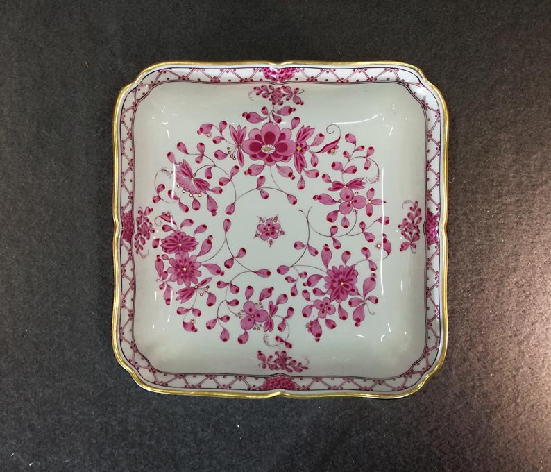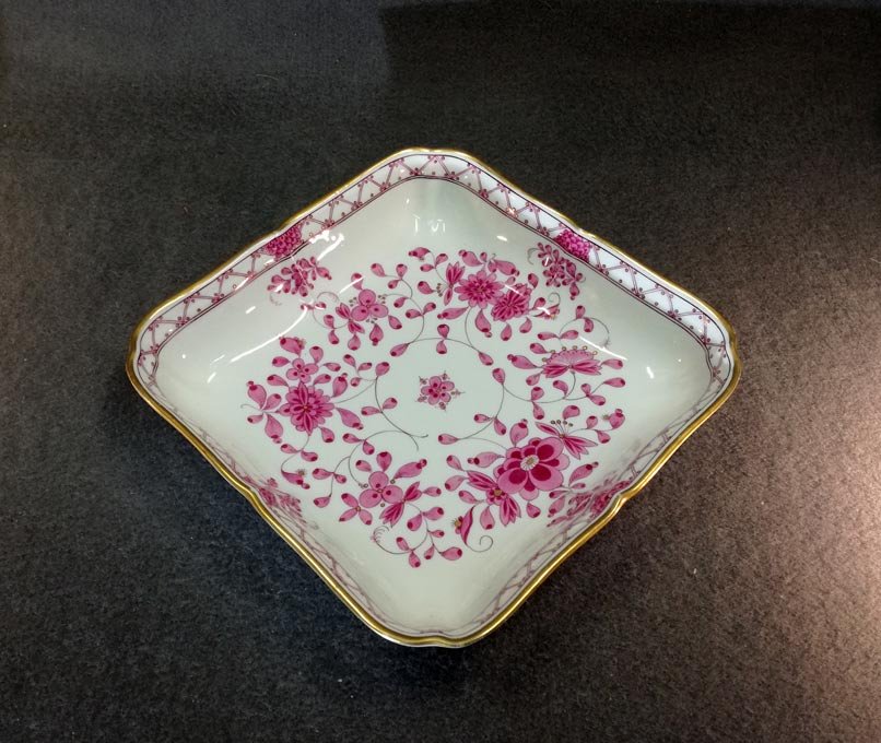 Teichert, Meissen; Viereck- Schale, Schüssel, Indisch Purpur Malerei mit Gold.