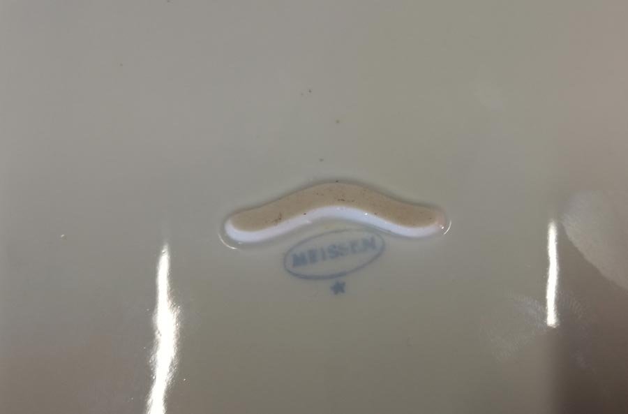 Ovale Teichermarke mit Schriftzug "Meissen" in Blau.