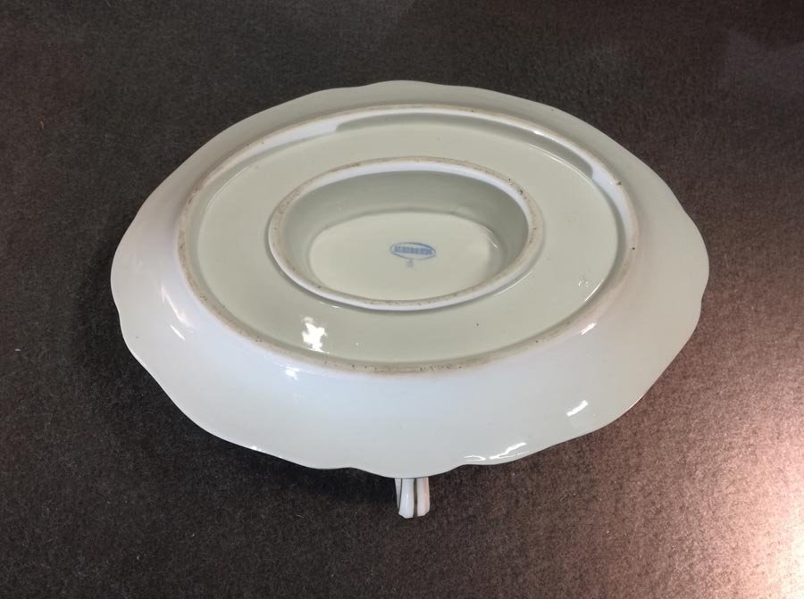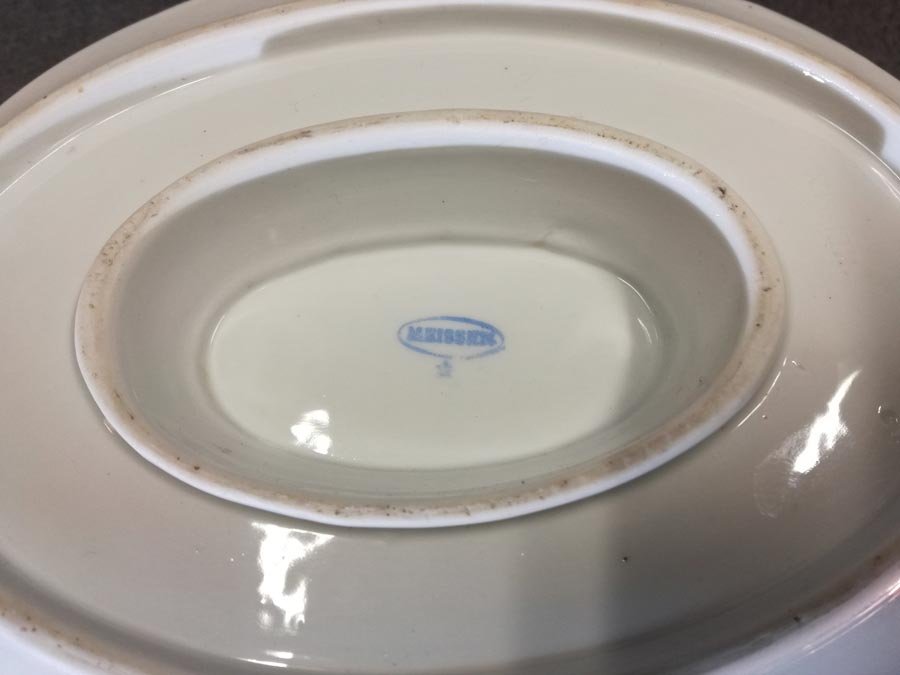 Ovale Teichermarke mit Schriftzug "Meissen" in Blau.