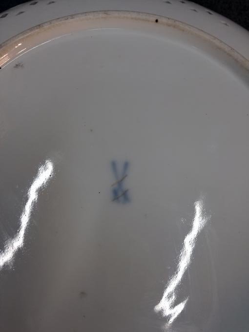 Tadelloser Zustand ohne Beschädigungen. Schwertermarke der Manufaktur Meissen, zwei mal gestrichen.