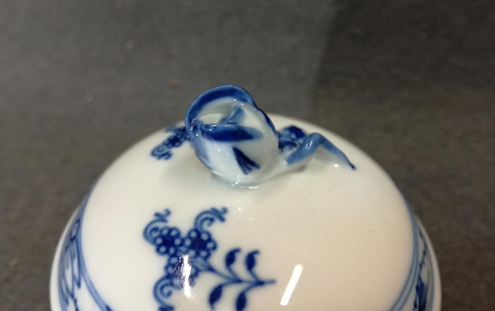 Reserviert! Meissen, Zwiebelmuster, kleine Zuckerdose, H. 8 cm, 1.Wahl