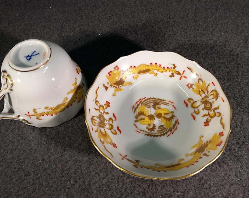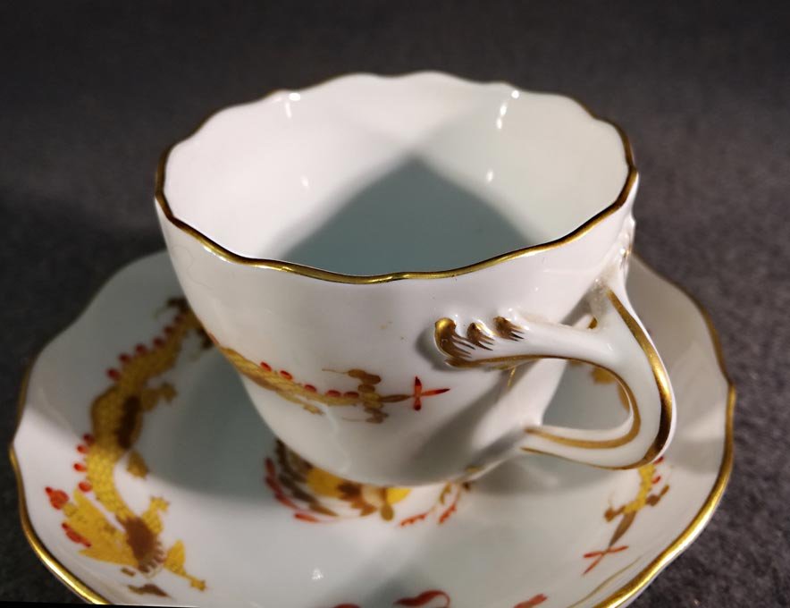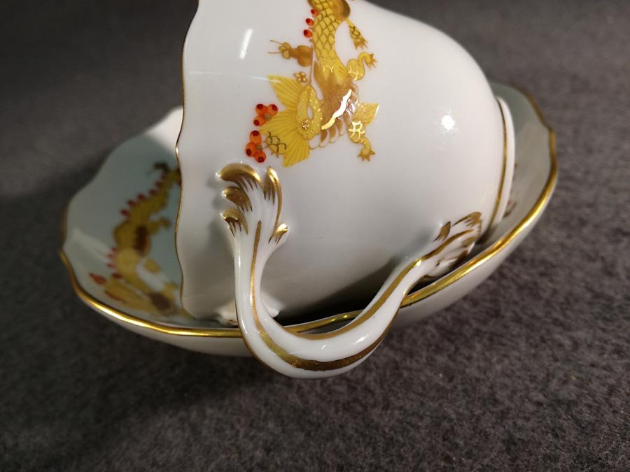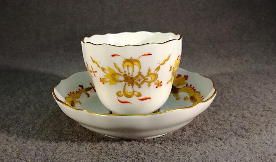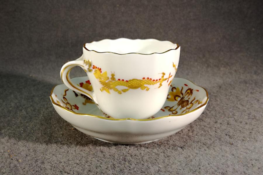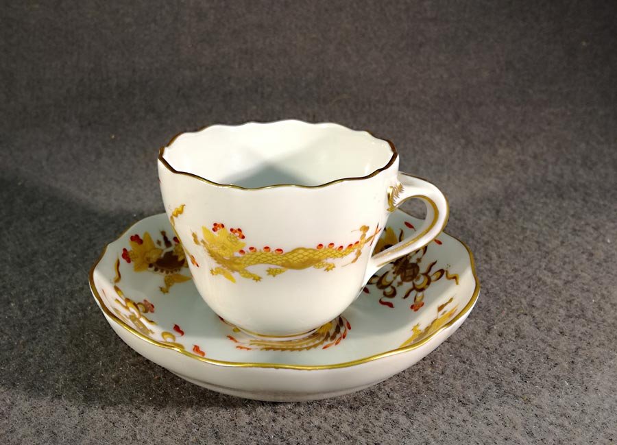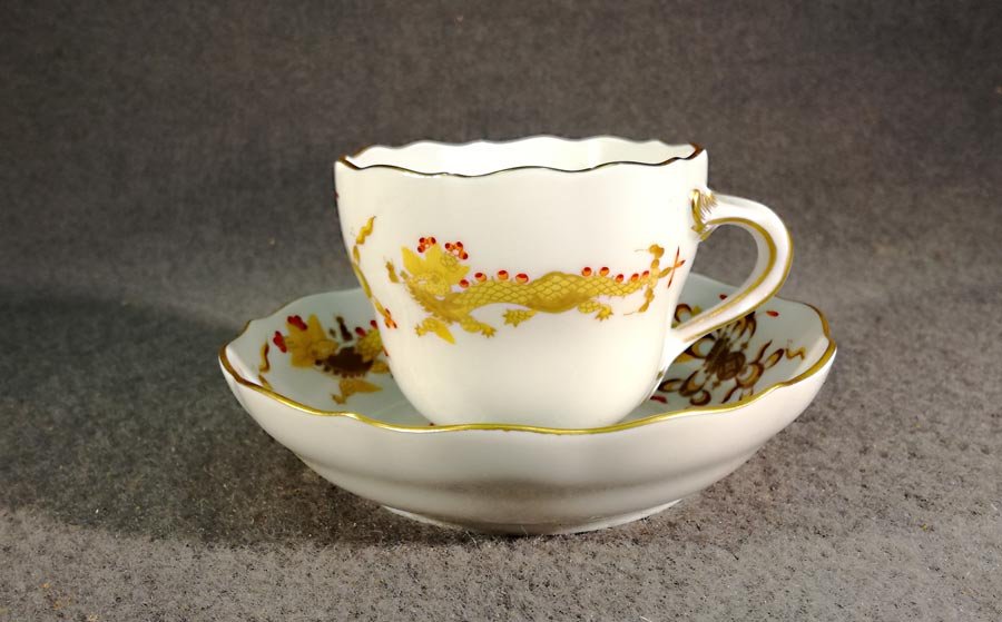 Meissen, Tasse, Gelber Drache goldgeschuppt, 1.Wahl, Mokkatasse mit Gold