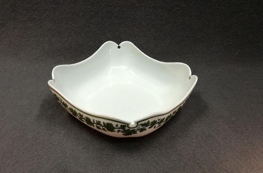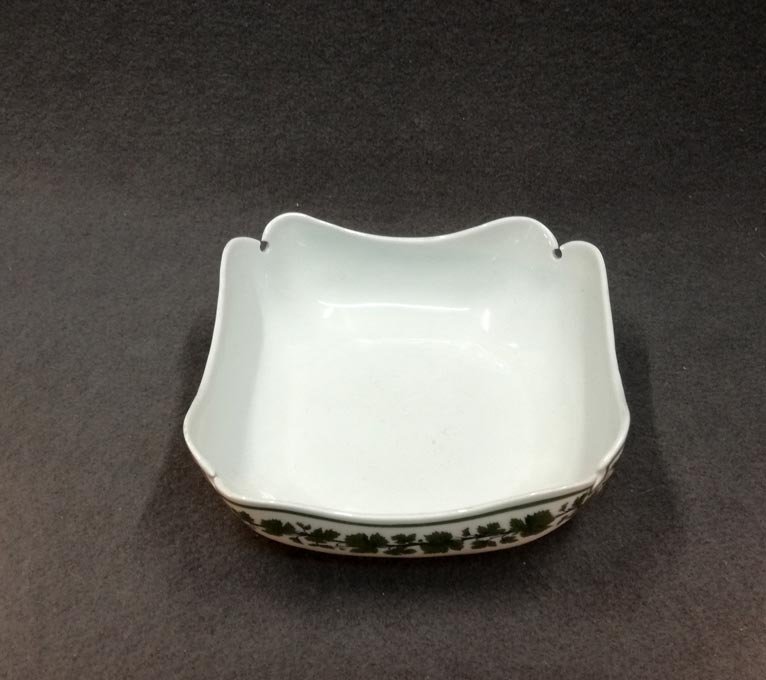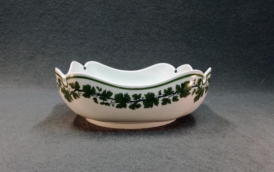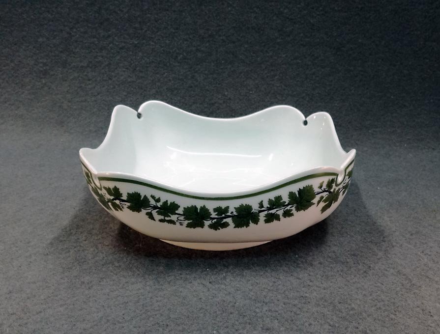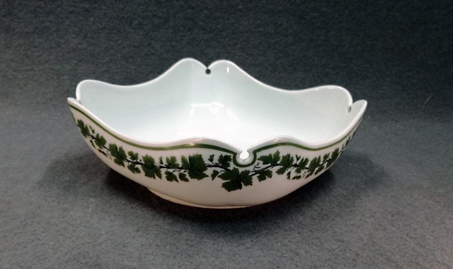 Manufaktur Meissen, Schüssel, viereckig mit geschwungenem Rand und Ecken. Weinlaub.