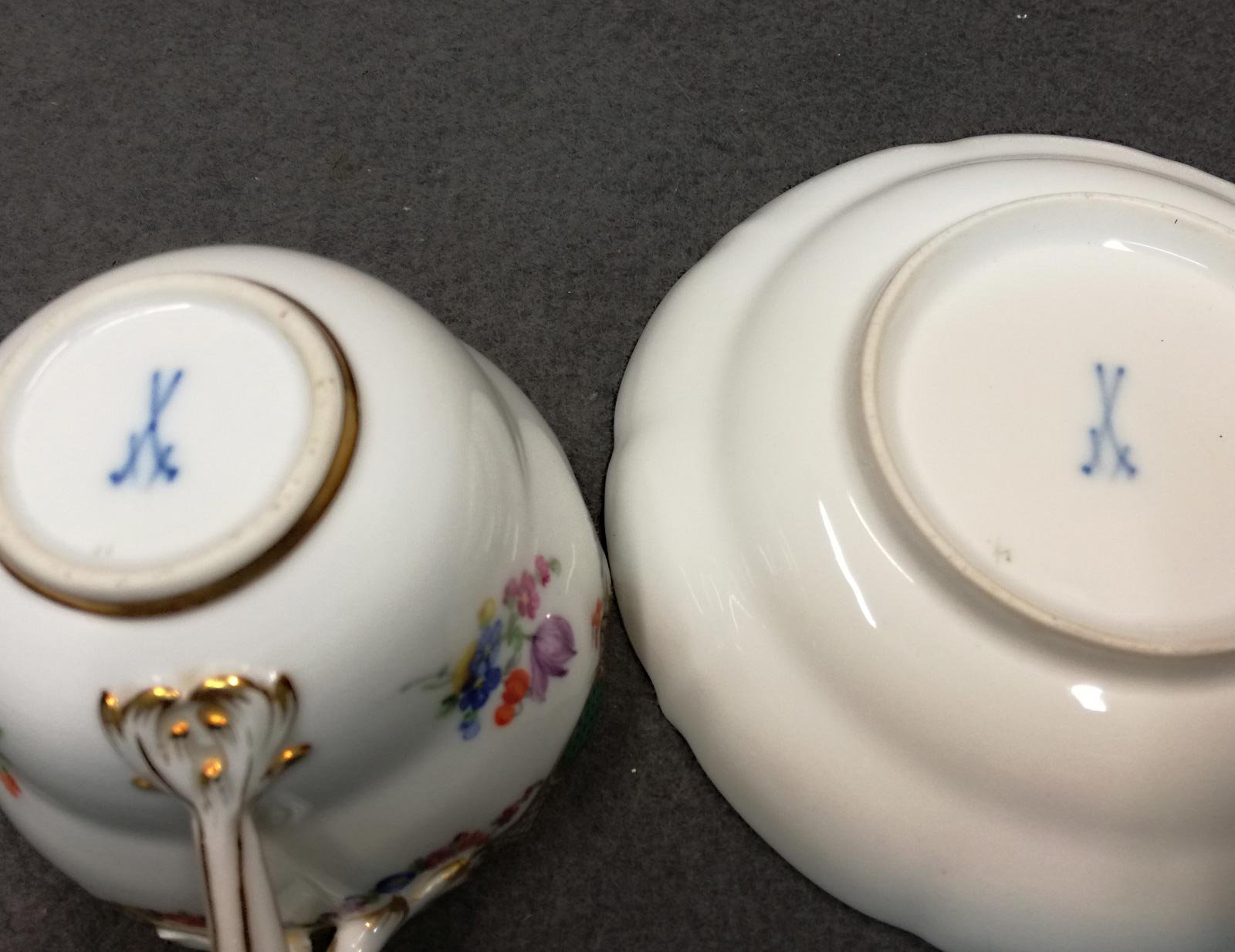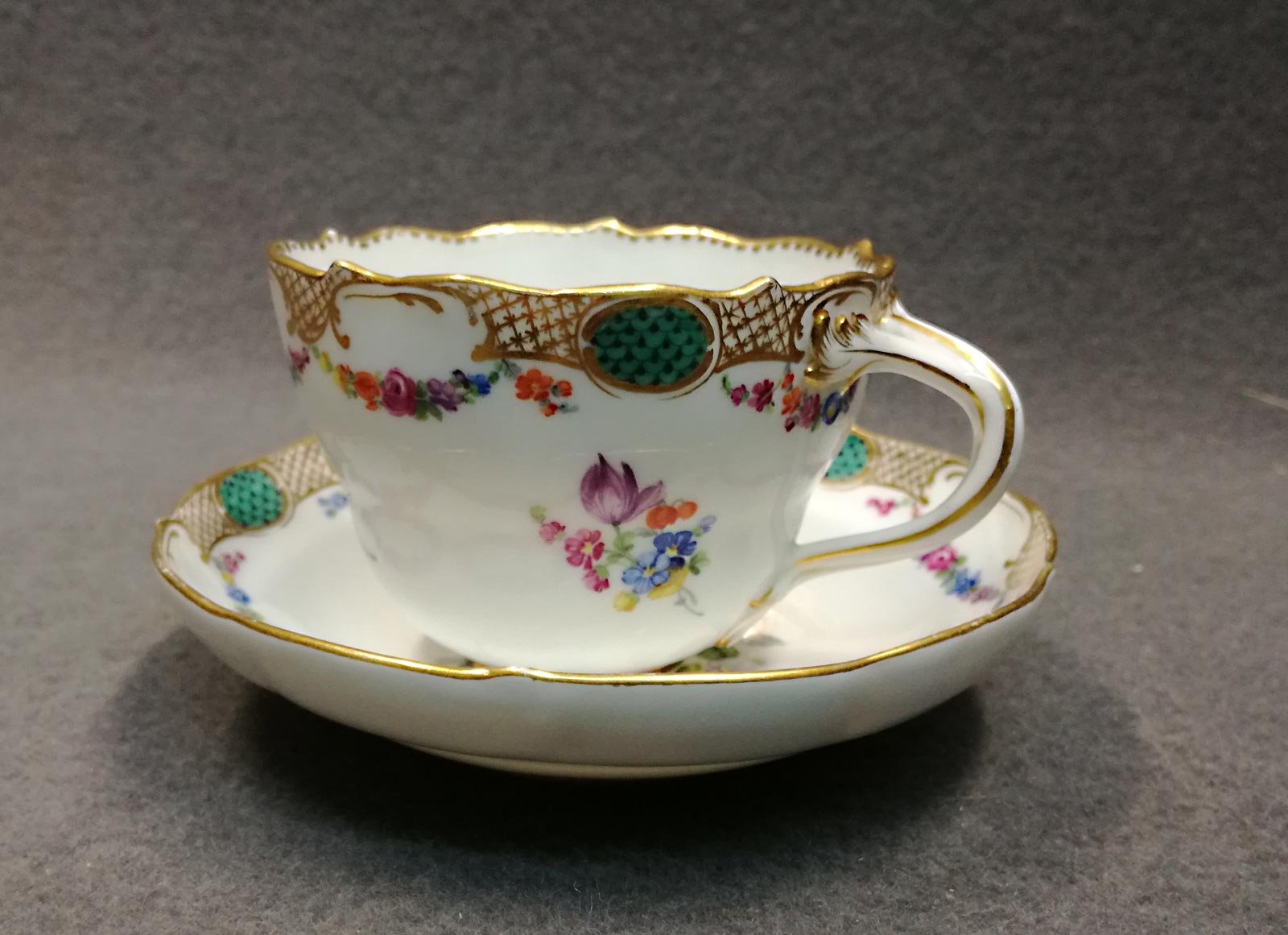 Kaffeetasse, Meissen, um 1860, Knaufzeit, 1. Wahl, ohne Schleifstriche. Zweiteilig, Tasse und Unterteller.