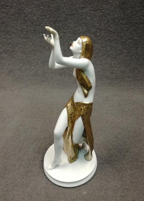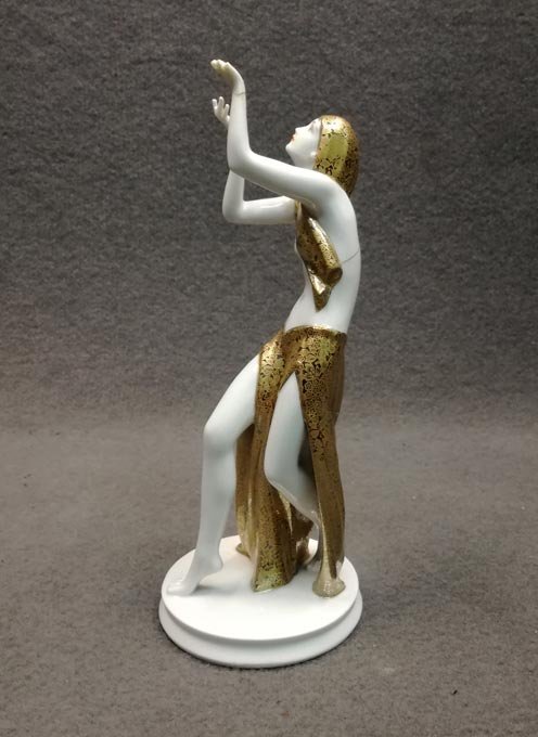 Rosenthal Figur; Tänzerin im Goldkleid von Gustav Oppel 1927.