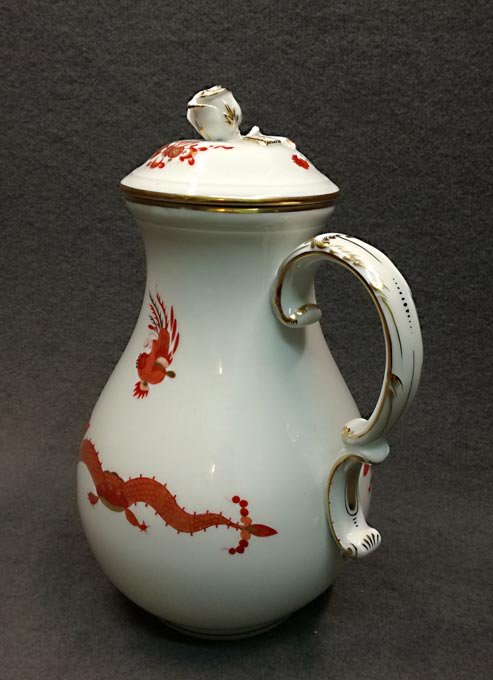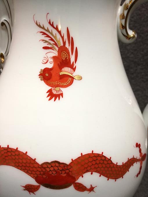 Roter Drache mit Gold (Gold geschupp)t. Ränder, Ausguss und Henkel ebenfalls mit Goldzier.