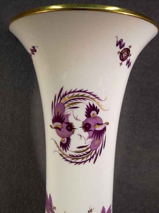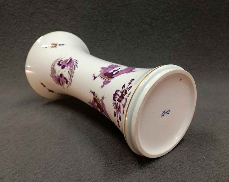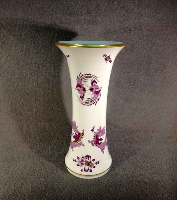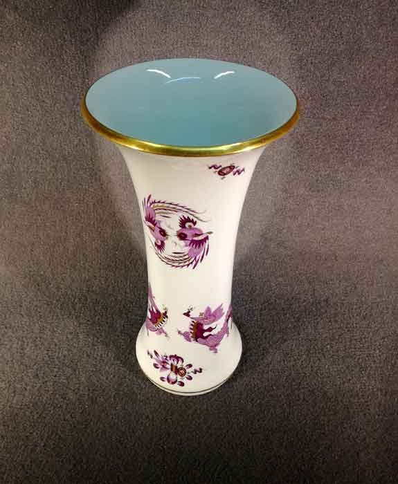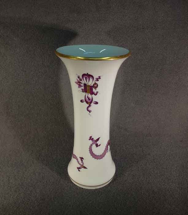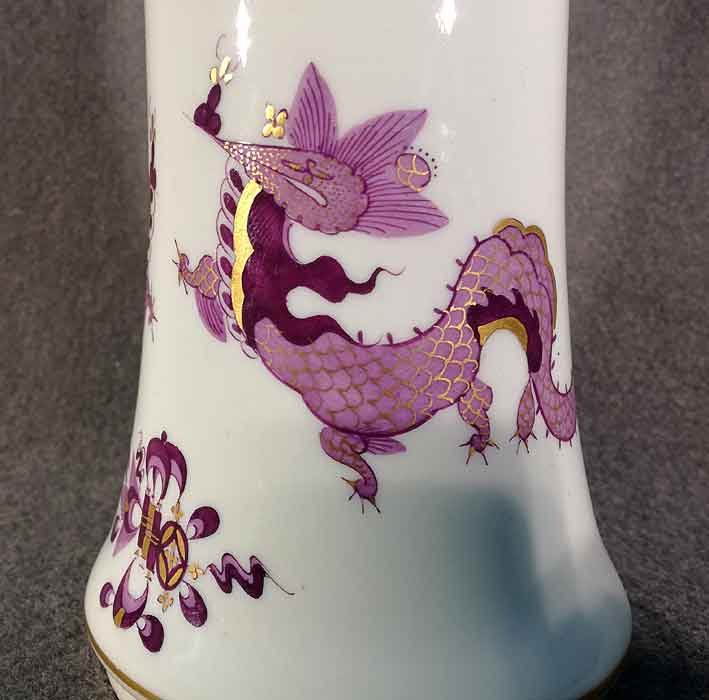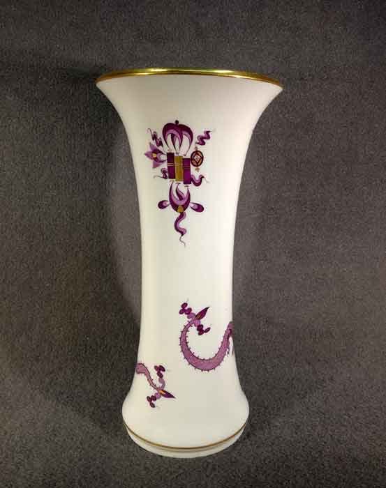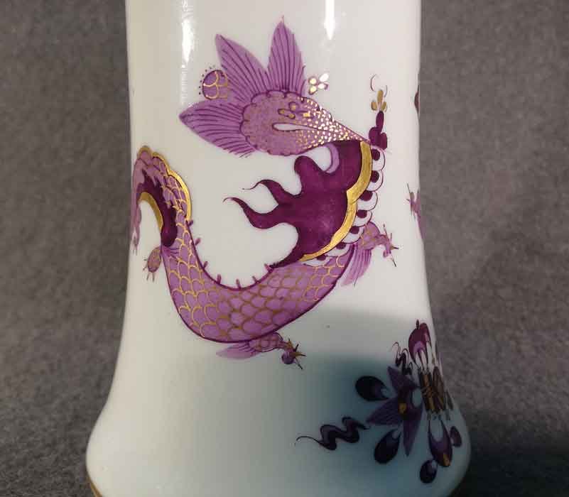 Meissen, Vase. Lila Drache, goldgeschuppt und weiterer Golddekor. Oberer und unterer Rand mit Gold.