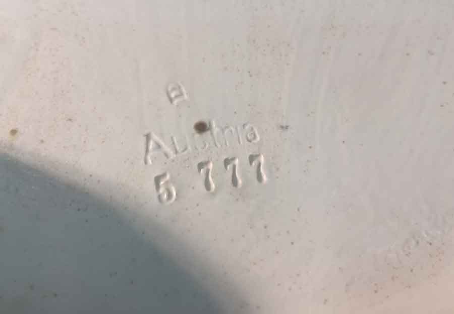 Gemarkt mit "Austria", darüber Bindenschildmarke/Bienenkorbmarke Wien (siehe Foto), darunter Nummer "5 777" , alles geprägt.