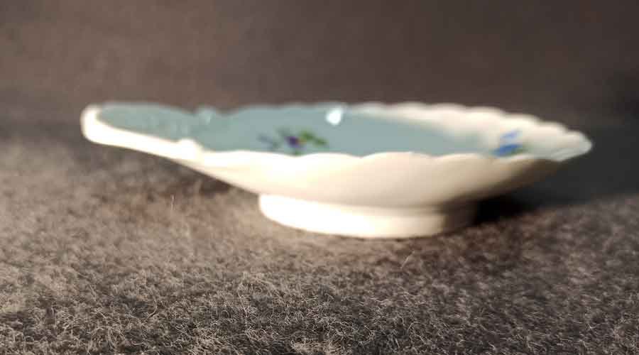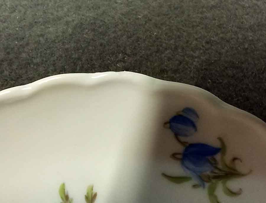 Das Schälchen hat einen kleinen, unauffälligen Fehler am Rand. Herstellungsbedingter Fehler, unter Glasur. Sonst i.O. und ohne Gebrauchsspuren.