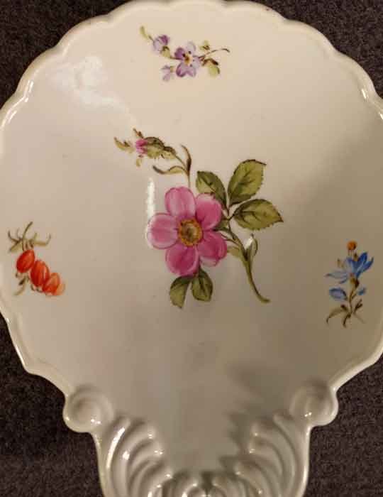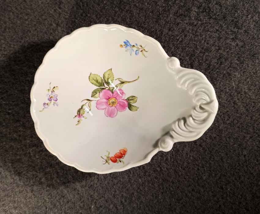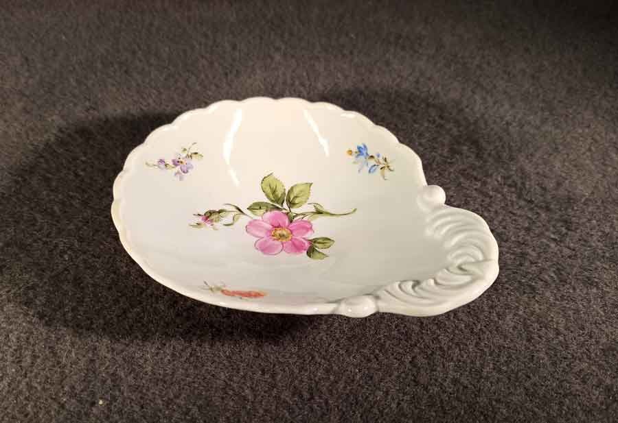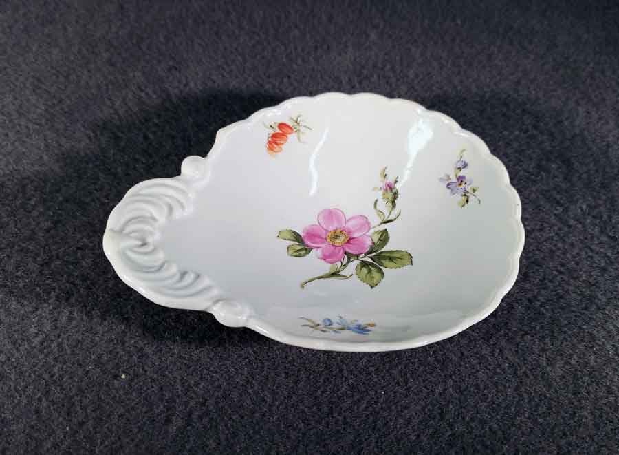 Meissen, Muschelschale, Blumenmalerei Rose.
