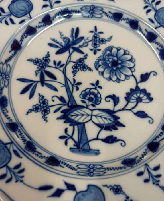 Meissen, alter Teller, Zwiebelmuster. Ersten Hälfte  19. Jahrhundert, ca 1830 bis 1860.