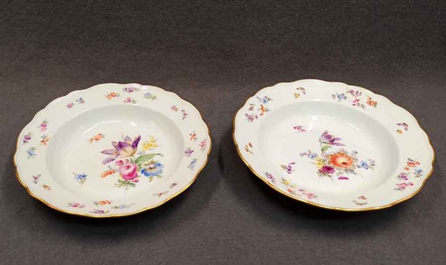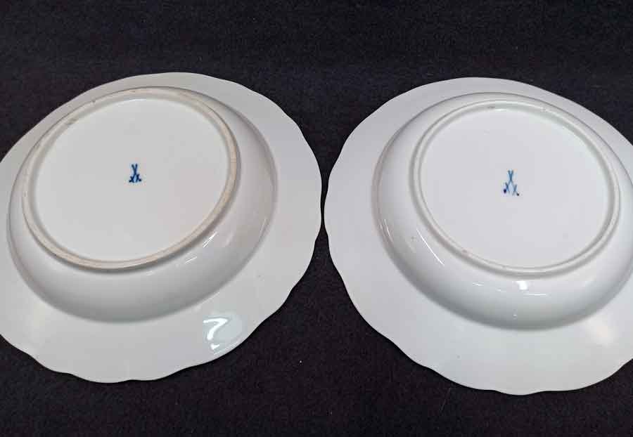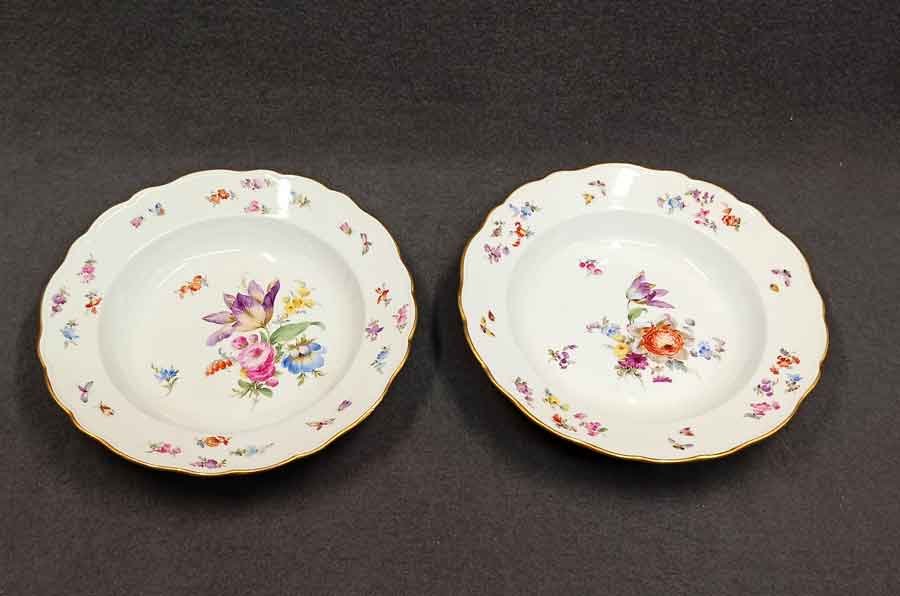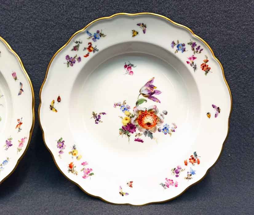 Meissen, Insekten und Blumenmalerei, 2 Teller, D. ca 23,8 cm. Alt, um 1880, Knaufzeit, 1. Wahl, ohne Schleifstriche.