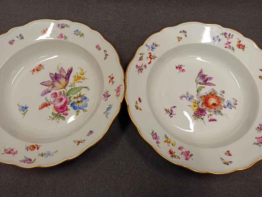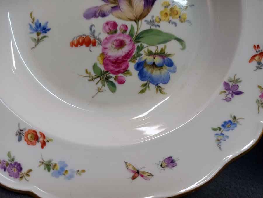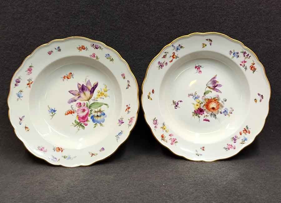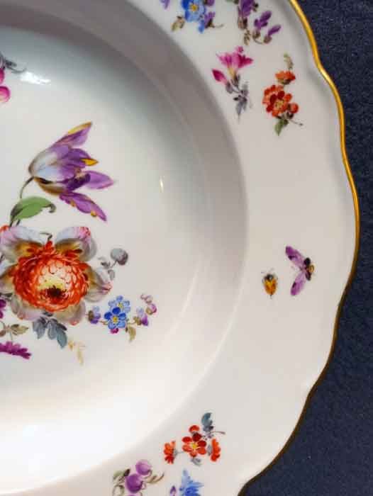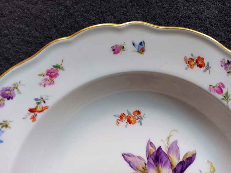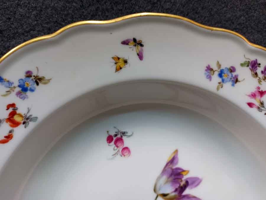 Meissen, Insekten+ Blumenmalerei+ Gold, 2x Teller,alt um 1880, Knauf, 1.Wahl i.O