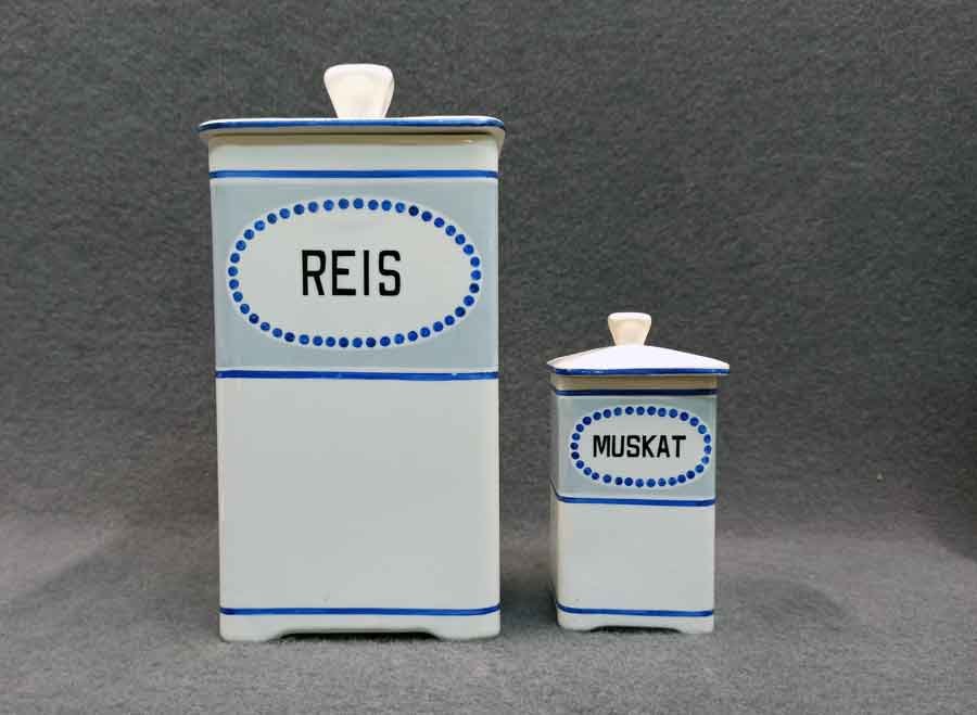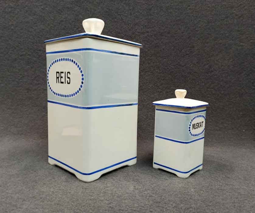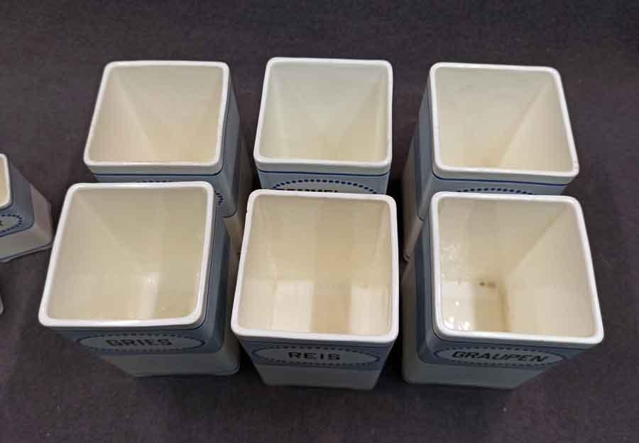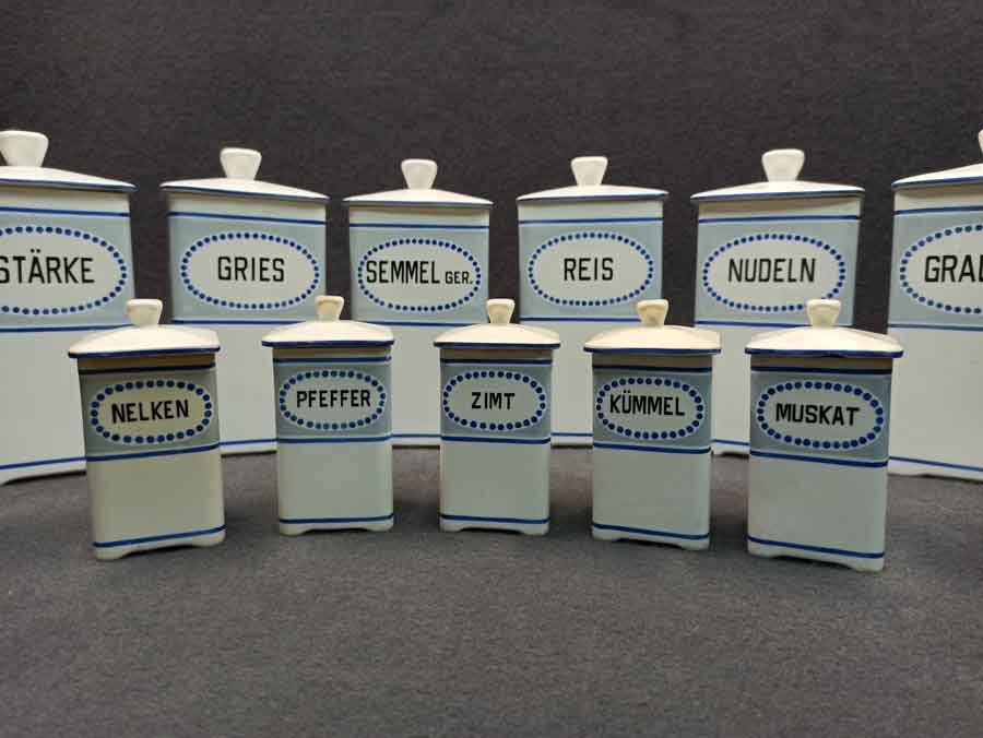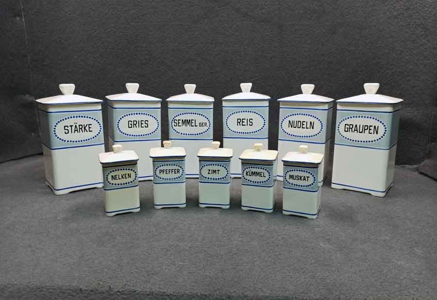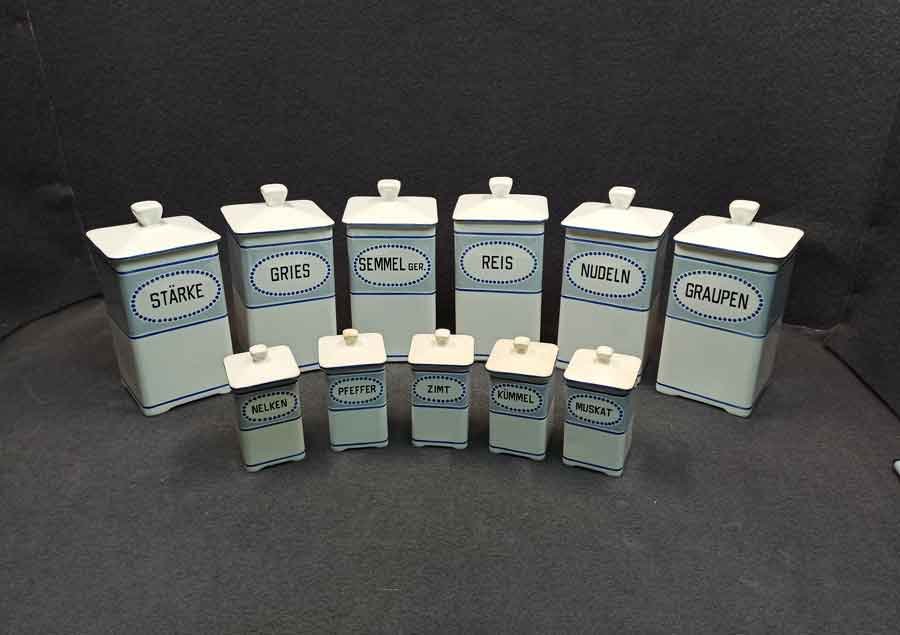 11 Vorratsgefäße für Lebensmittel und Gewürze.