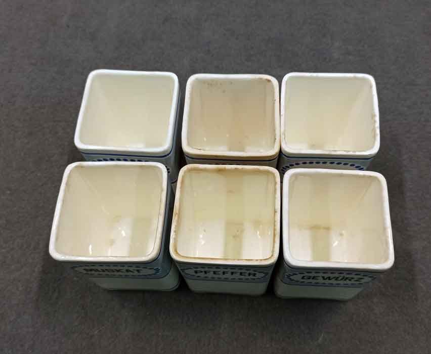 5 (+1=6) x kleine Gefäße für Gewürze, H. 11 cm (mit Deckelknauf)