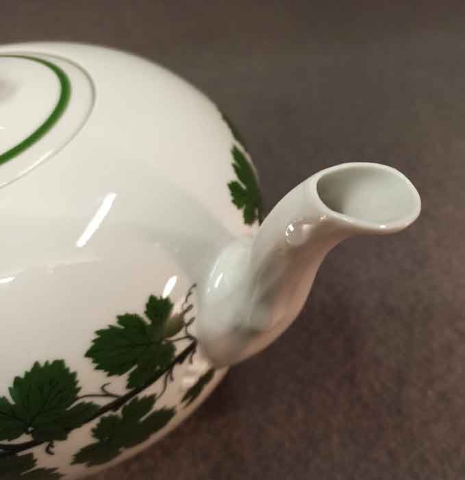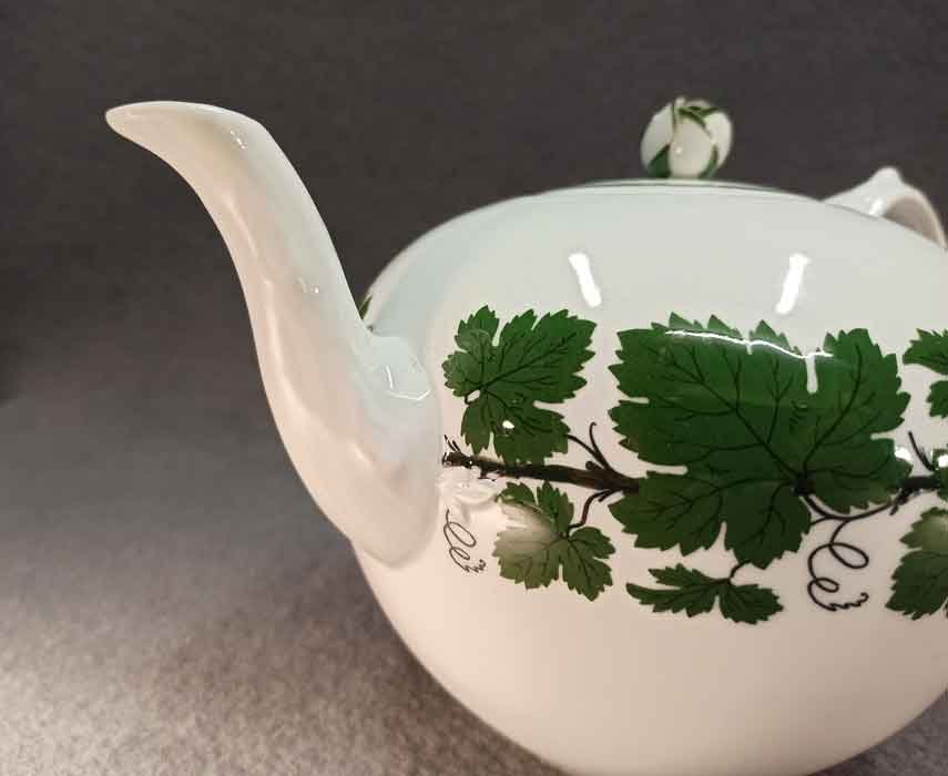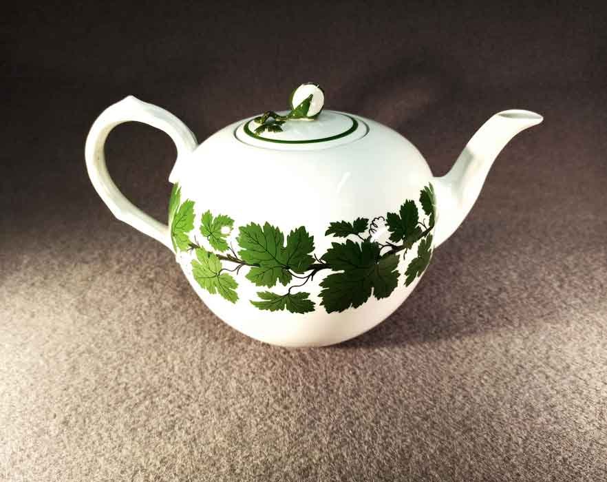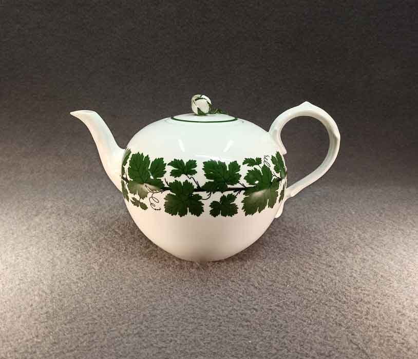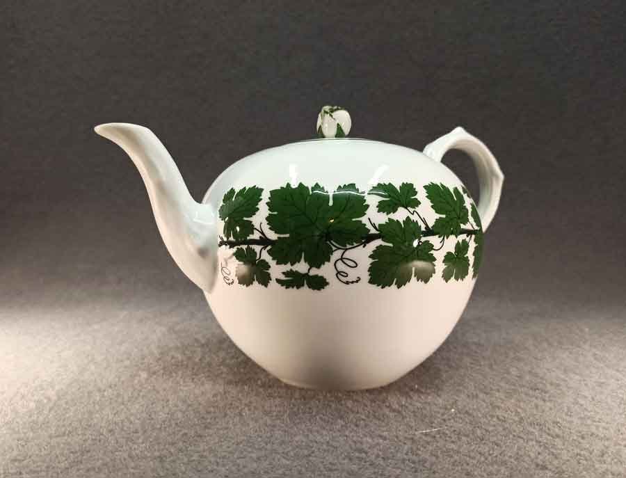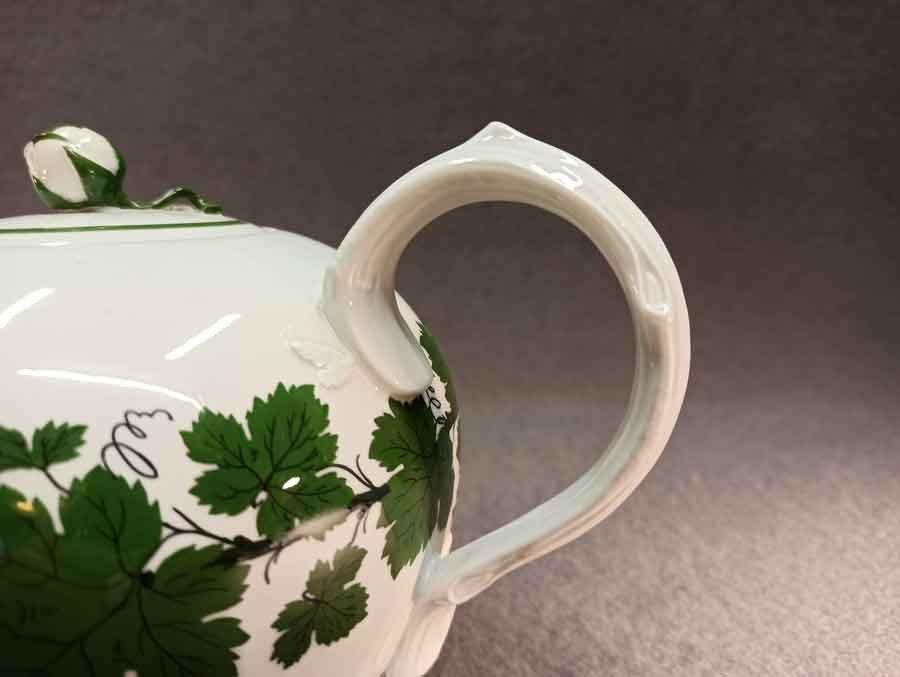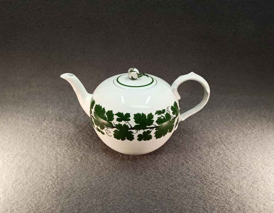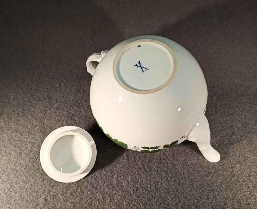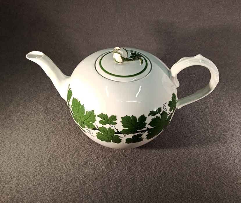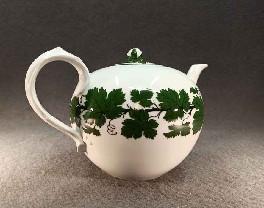 Manufaktur Meissen; Teekanne, Dekor Weinlaub (voller grüner Weinkranz).